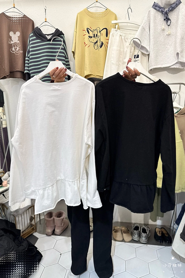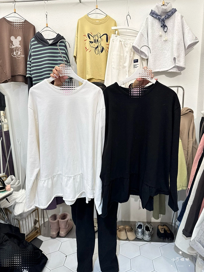 可以直接點影片看此款商品介紹適合S-XL號穿尺寸(cm):肩寬52 胸圍124 袖長60 袖圍48 衣長63材質:棉產地:韓國洗滌說明:放洗衣袋機洗MODEL 莎妹:159cm/上身S號/下身S號MODEL 小莎:163cm/上身M號/下身M號