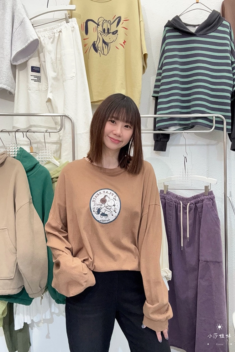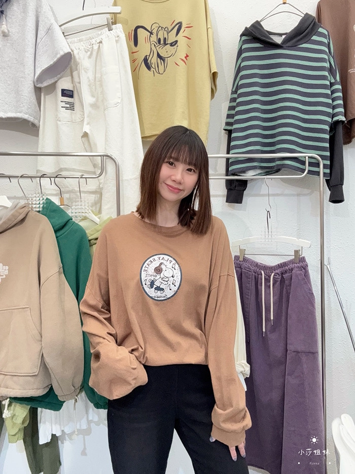 可以直接點影片看此款商品介紹適合S-XL號穿尺寸(cm):肩寬71 胸圍126 袖長55 袖圍48 衣長54材質:棉產地:韓國洗滌說明:放洗衣袋機洗MODEL 莎妹:159cm/上身S號/下身S號MODEL 小莎:163cm/上身M號/下身M號