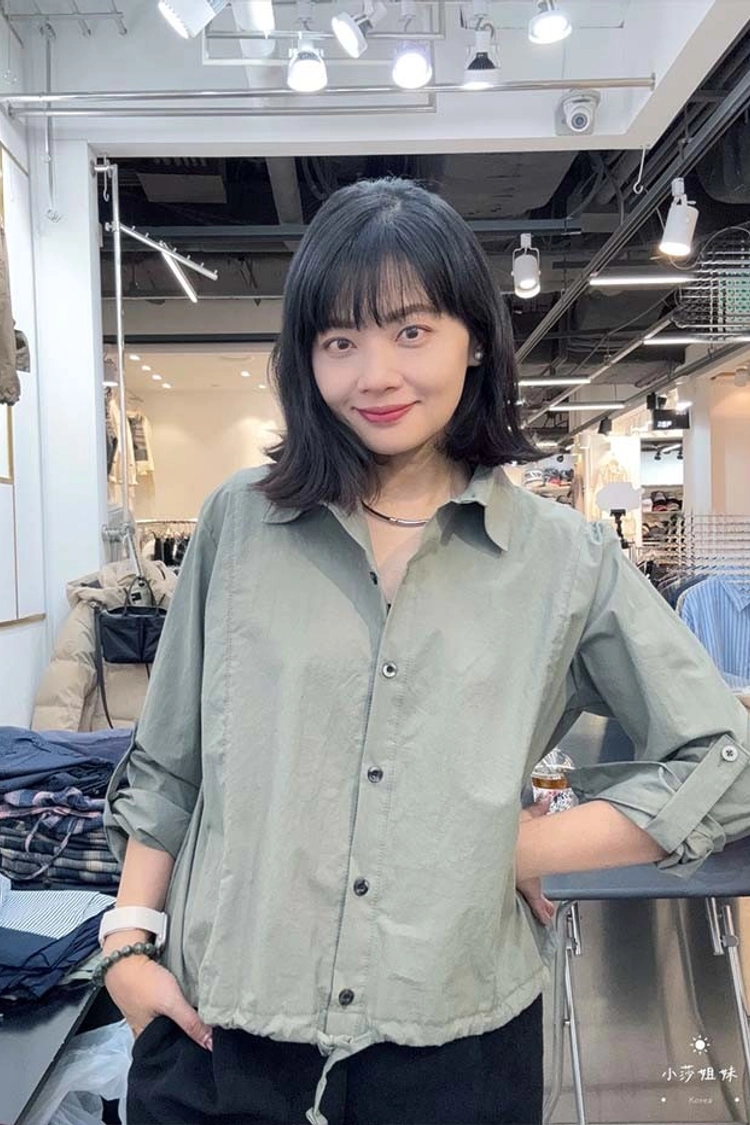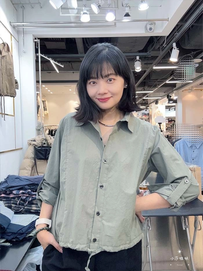適合S-L號穿尺寸(cm):肩寬48 胸圍112 袖長53 袖圍40 衣長55 材質:棉產地:韓國洗滌說明:放洗衣袋機洗MODEL 莎妹:159cm/上身S號/下身S號MODEL 小莎:163cm/上身M號/下身M號