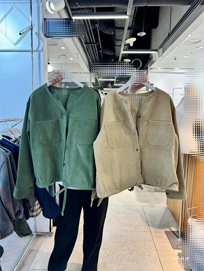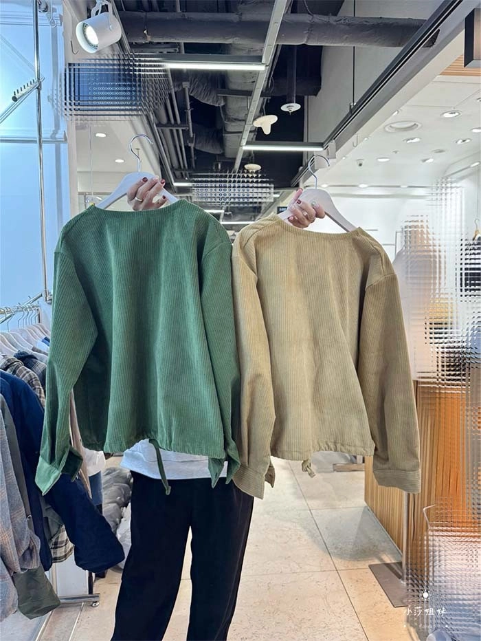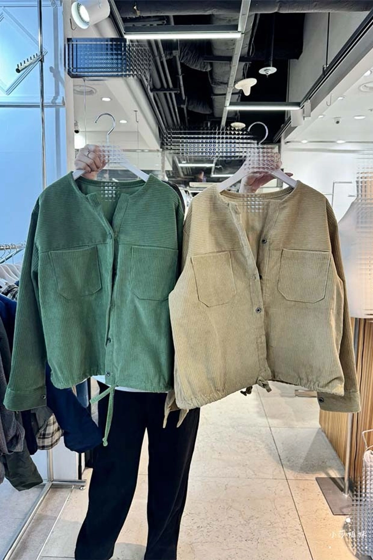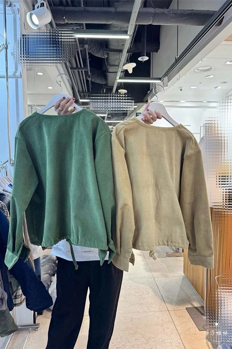 適合S-L號穿尺寸(cm):肩寬49 胸圍114 袖長55 袖圍42 衣長56 材質:燈芯絨產地:韓國洗滌說明:放洗衣袋機洗MODEL 莎妹:159cm/上身S號/下身S號MODEL 小莎:163cm/上身M號/下身M號