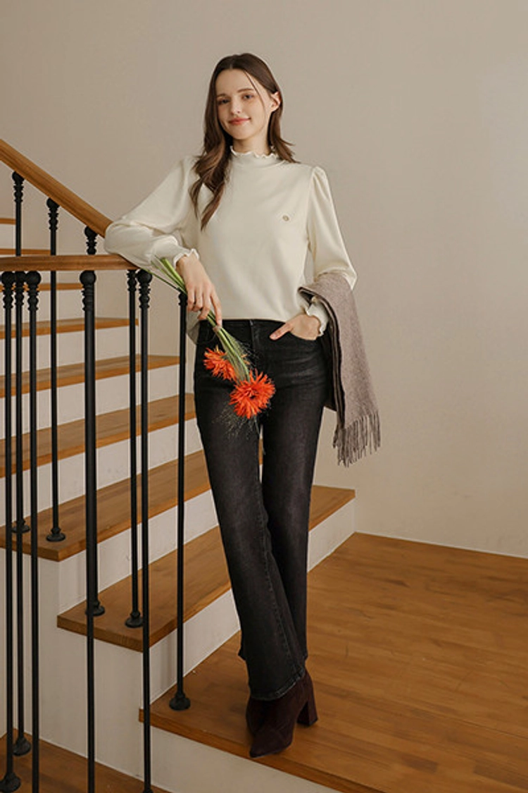 2601C008 愛心金屬釦小立領內刷毛顯瘦上衣