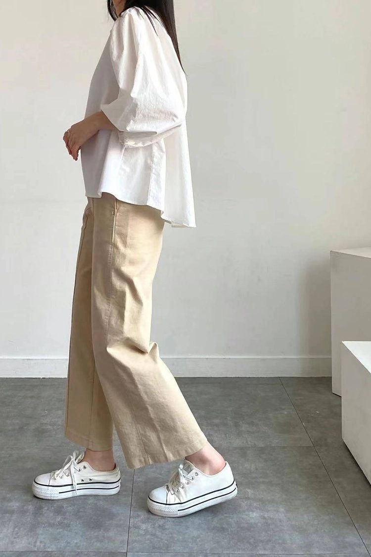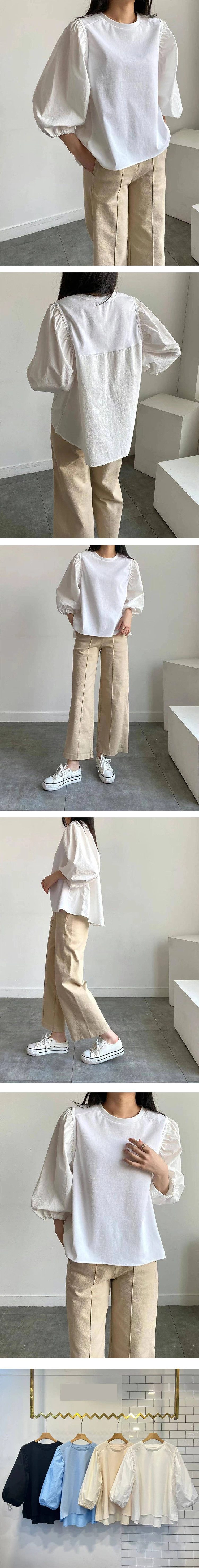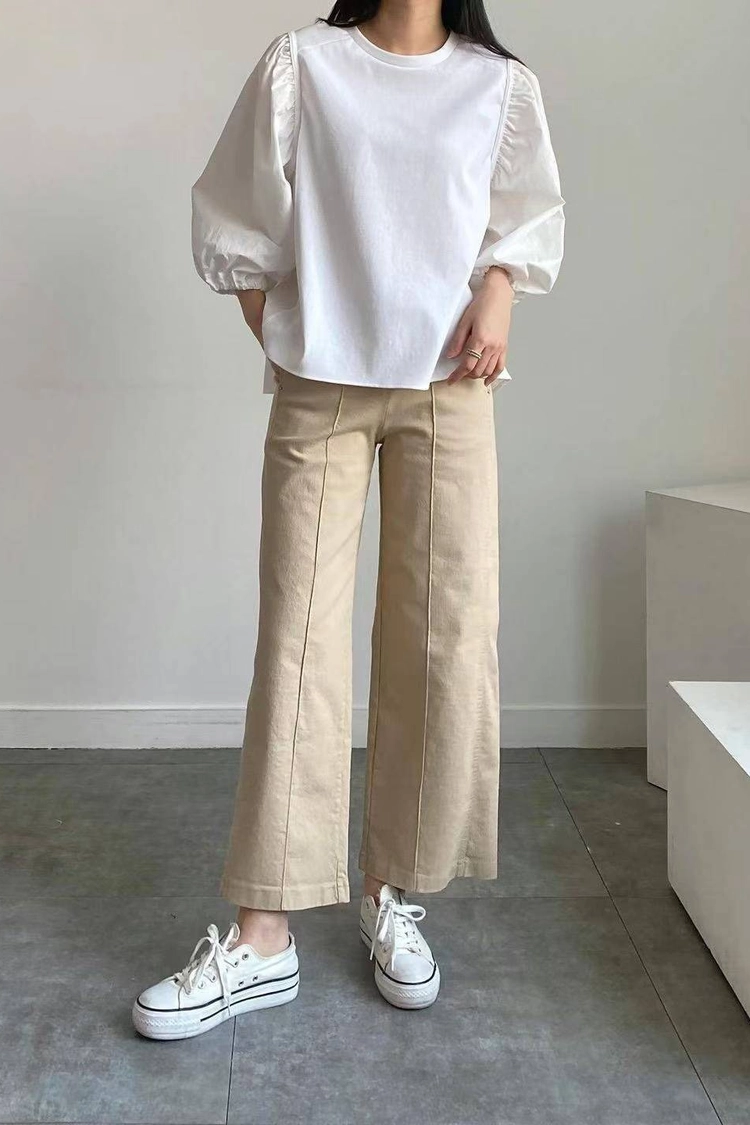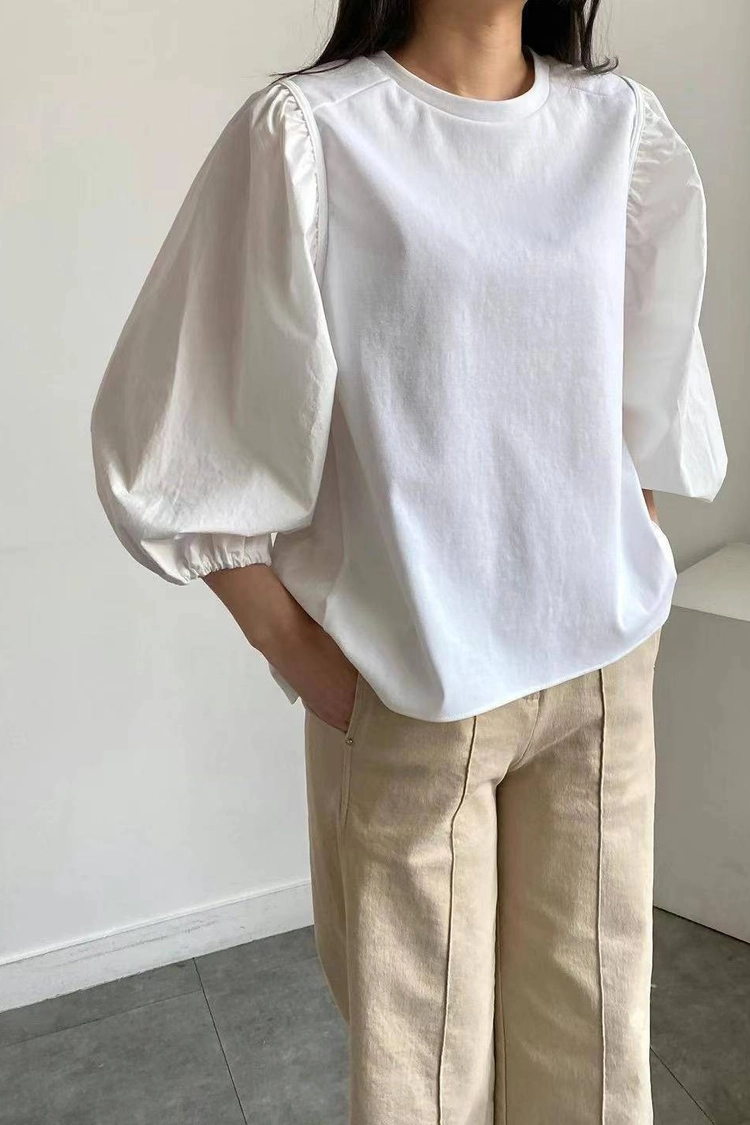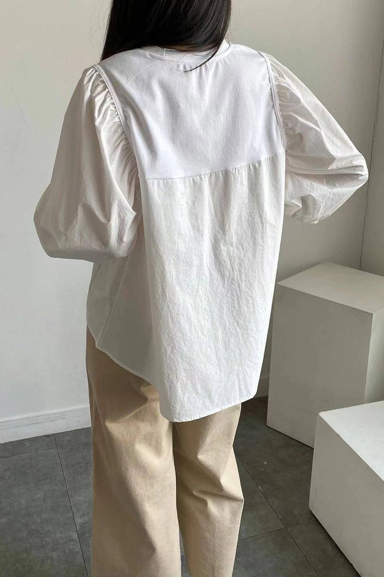 2601C014 春.皺褶傘擺剪裁小澎袖顯瘦上衣