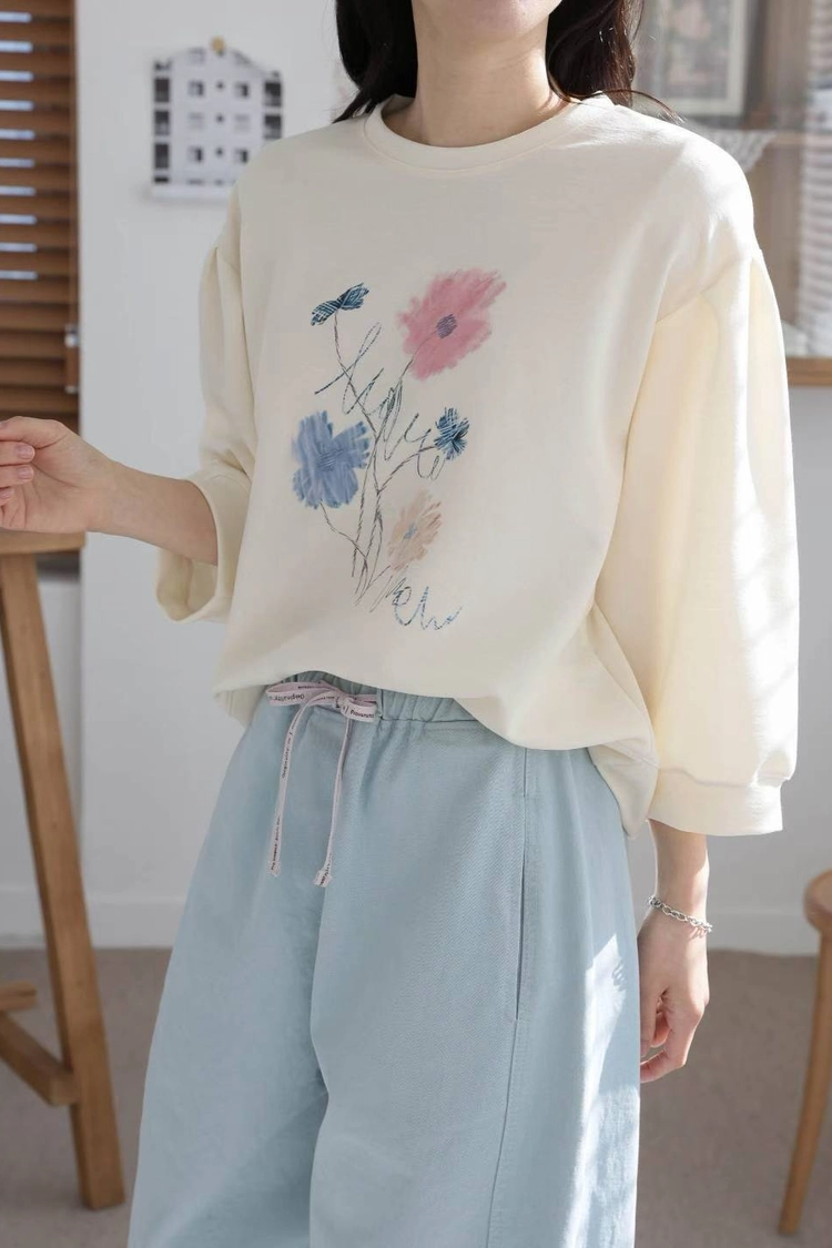 2601C015 春.可愛小花七分袖上衣