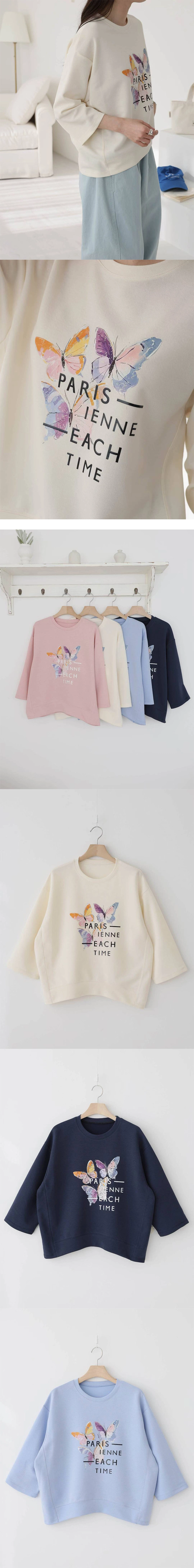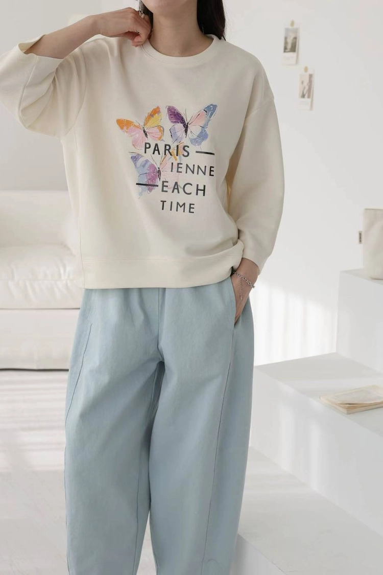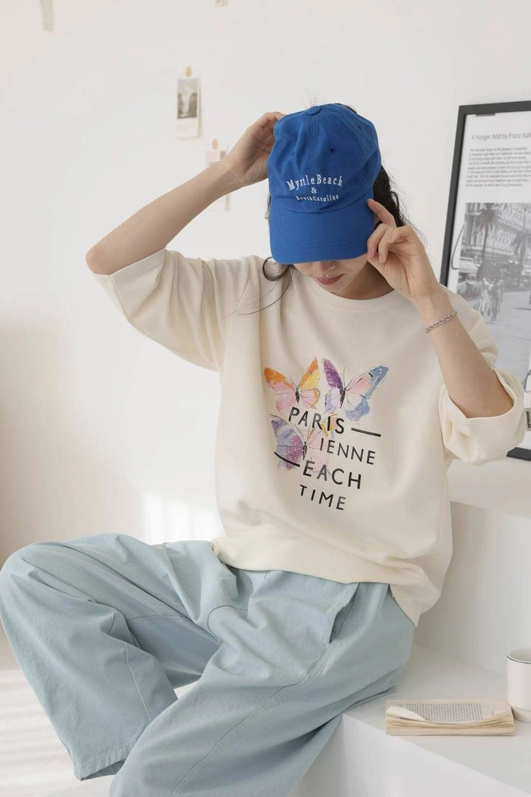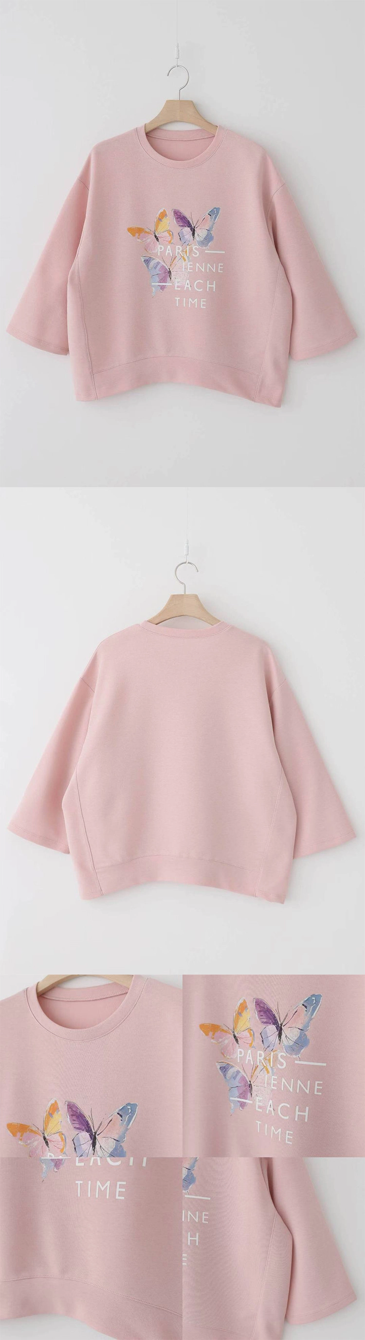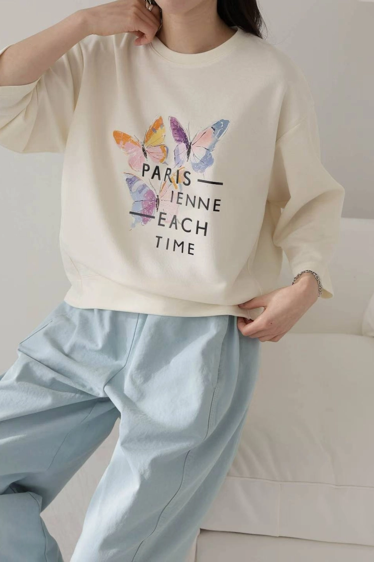 2601C017 春.蝴蝶英文刷色顯瘦上衣