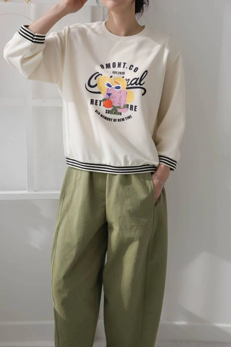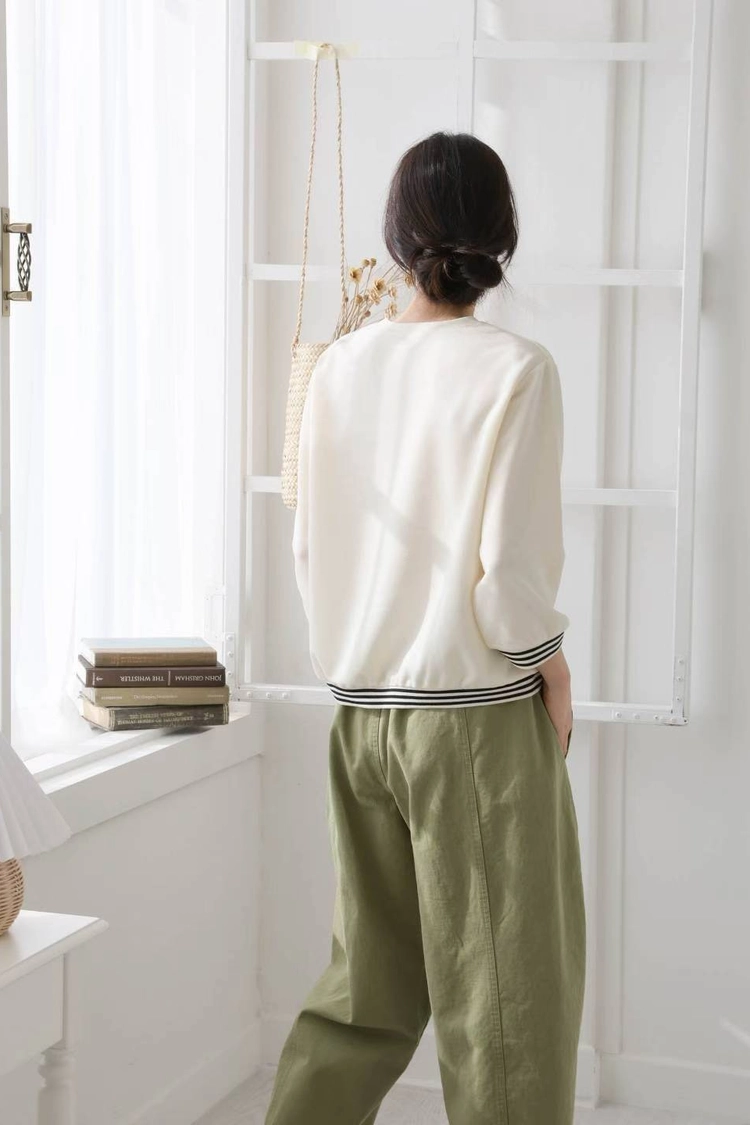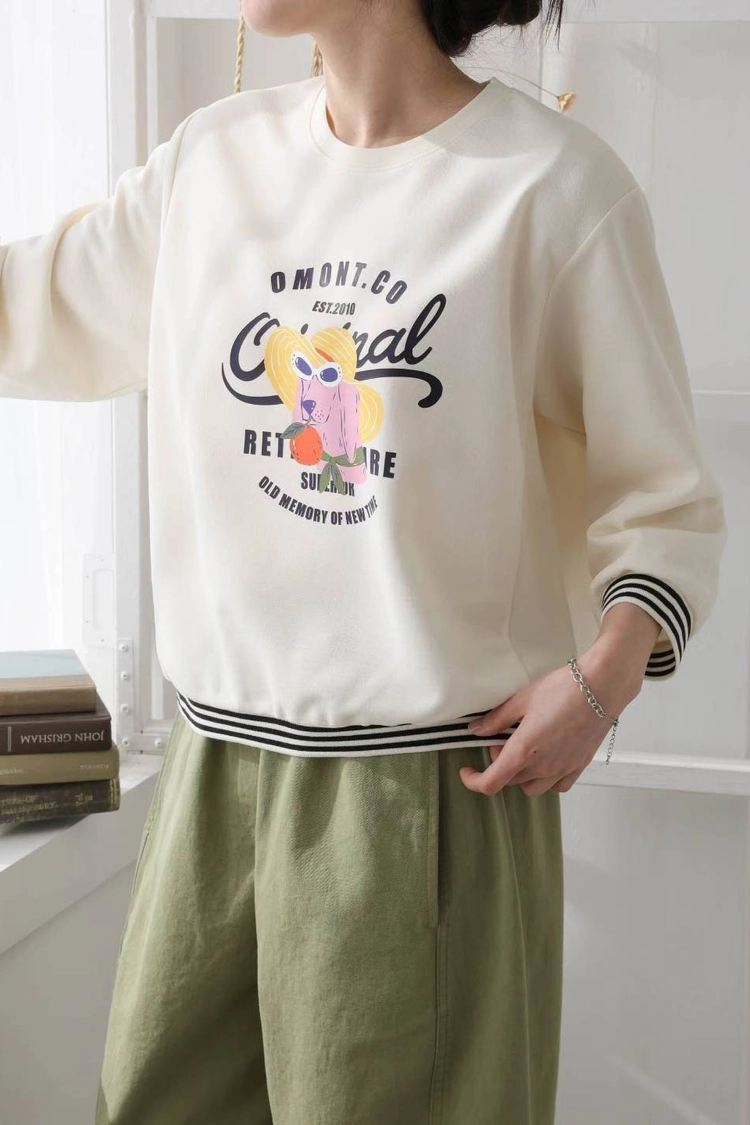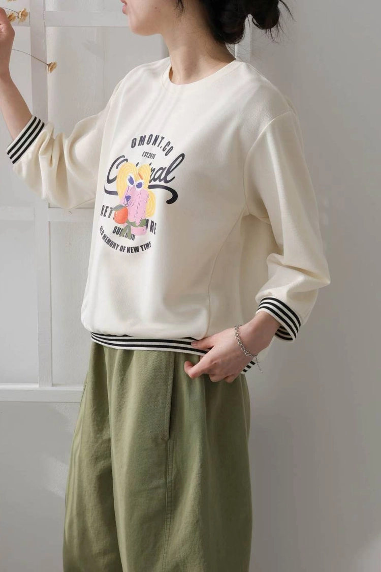2601C019 春.時尚小狗條紋滾邊七分袖上衣