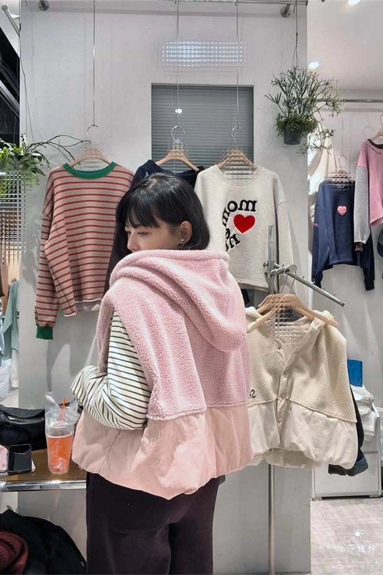可以直接點影片看此款商品介紹適合S-XL號穿尺寸(cm):肩寬58 胸圍140 袖口圍46 衣長55 材質:毛料、聚酯產地:韓國洗滌說明:放洗衣袋機洗MODEL 莎妹:159cm/上身S號/下身S號MODEL 小莎:163cm/上身M號/下身M號