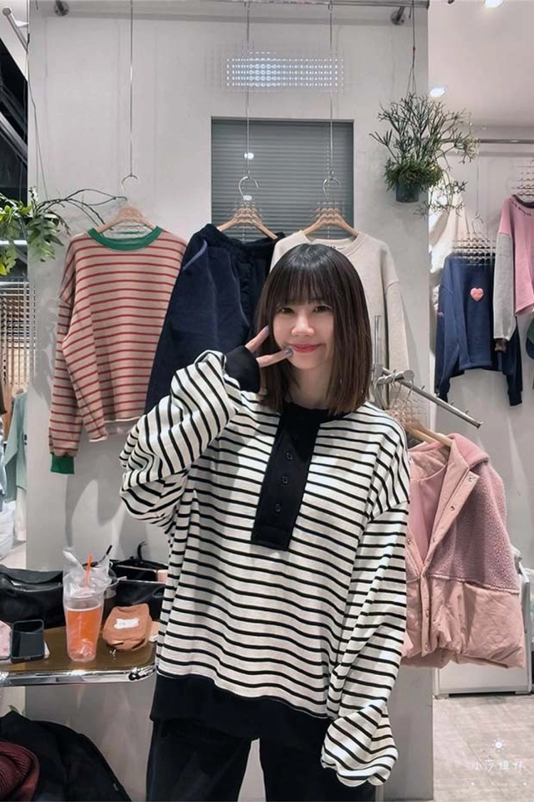 可以直接點影片看此款商品介紹適合S-XL號穿尺寸(cm):肩寬63 胸圍140 袖長57 袖圍58 衣長64-70材質:棉產地:韓國洗滌說明:放洗衣袋機洗MODEL 莎妹:159cm/上身S號/下身S號MODEL 小莎:163cm/上身M號/下身M號