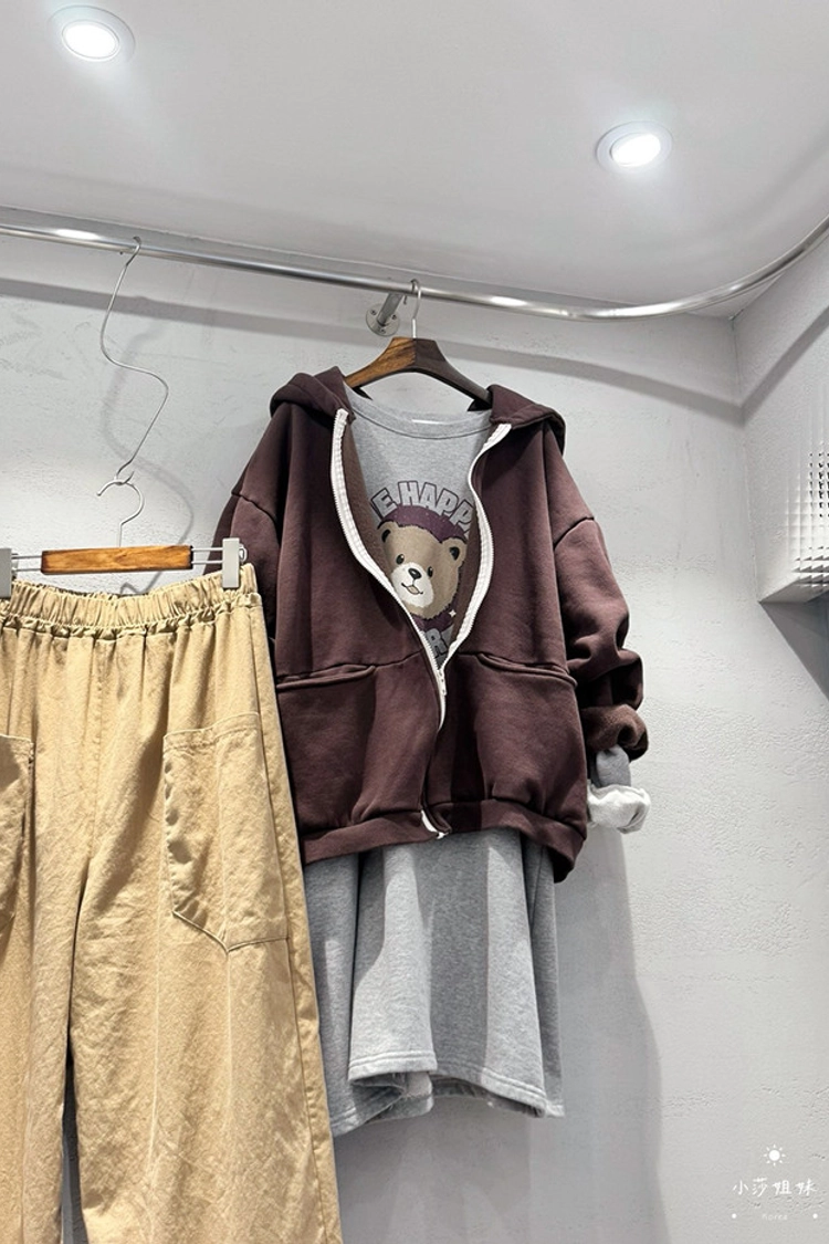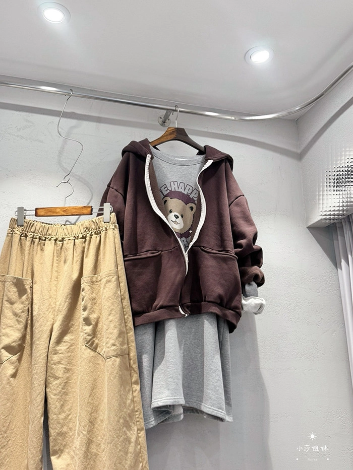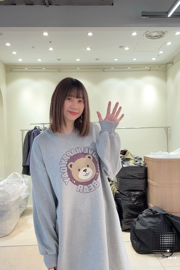 可以直接點影片看此款商品介紹適合S-XL號穿尺寸(cm):肩寬63 胸圍134 袖長48 袖圍48 衣長85材質:棉產地:韓國洗滌說明:放洗衣袋機洗MODEL 莎妹:159cm/上身S號/下身S號MODEL 小莎:163cm/上身M號/下身M號