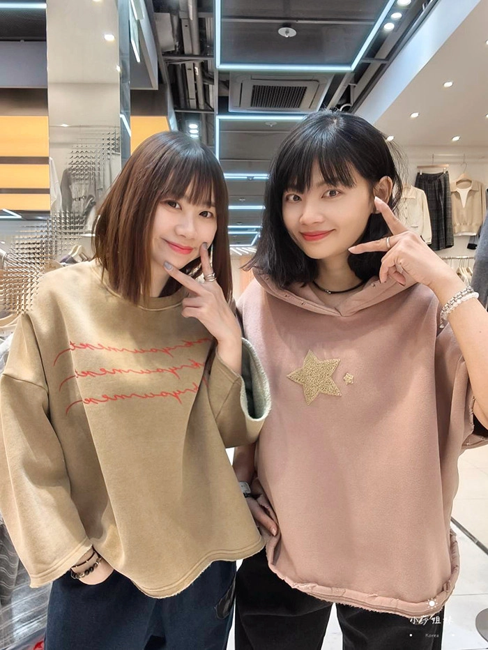可以直接點影片看此款商品介紹適合S-XL號穿尺寸(cm):肩寬+袖長34 胸圍134 袖圍68 衣長62材質:棉/內裡刷毛產地:韓國洗滌說明:放洗衣袋機洗MODEL 莎妹:159cm/上身S號/下身S號MODEL 小莎:163cm/上身M號/下身M號