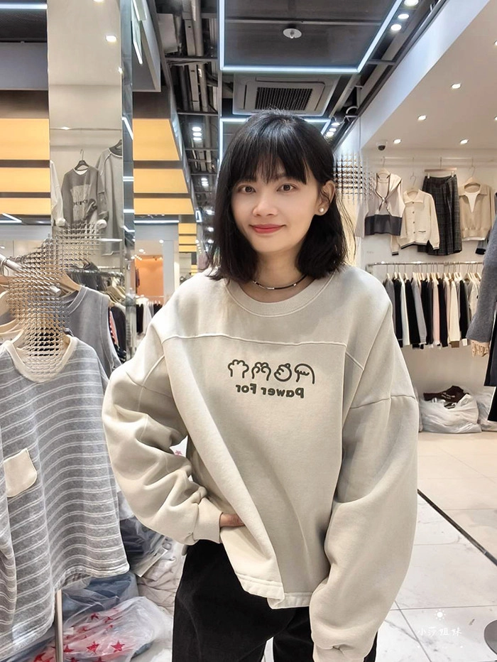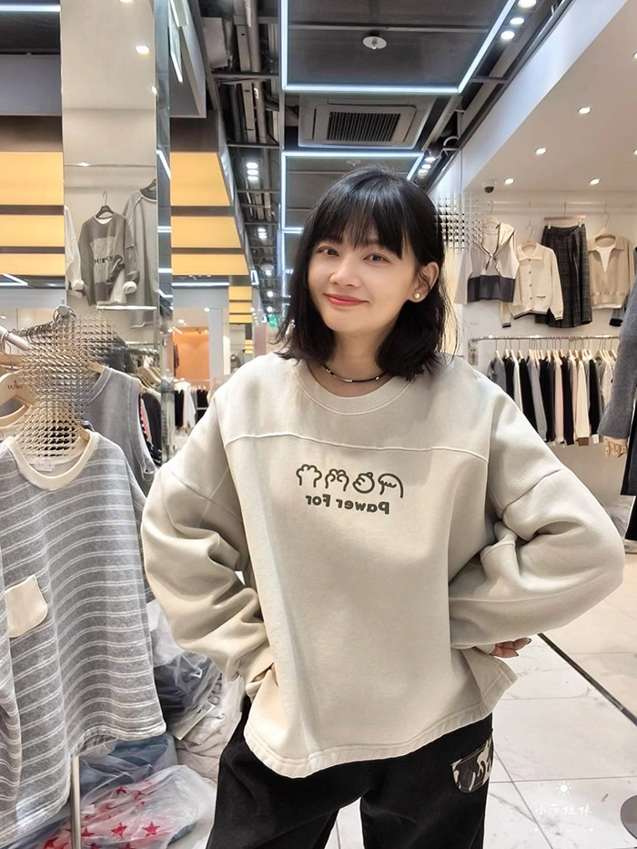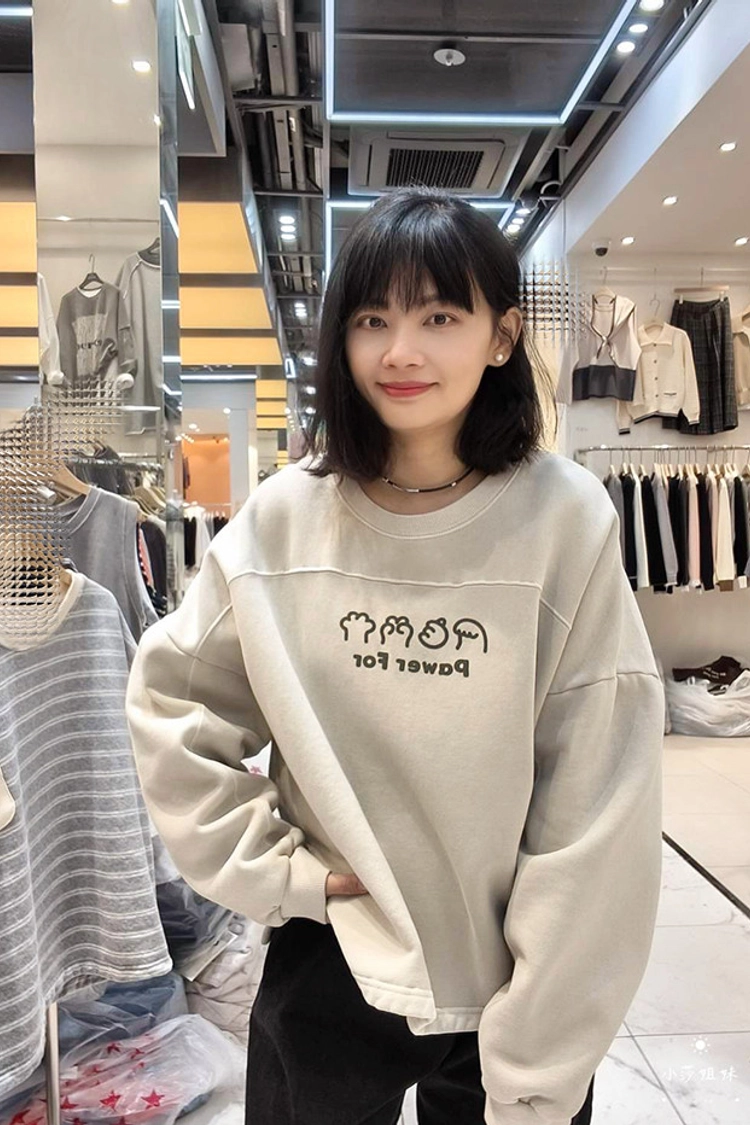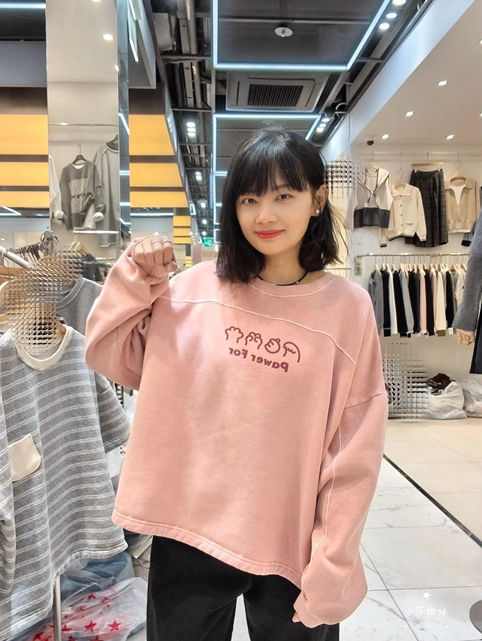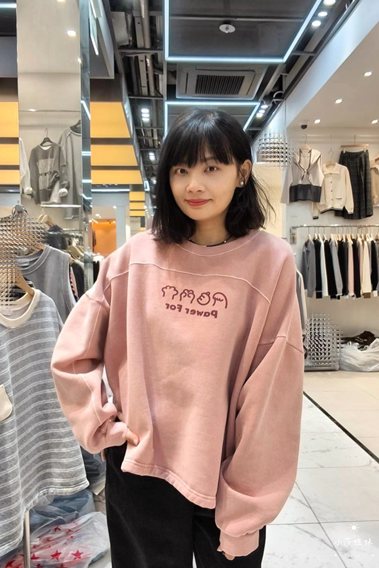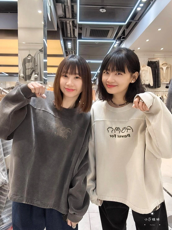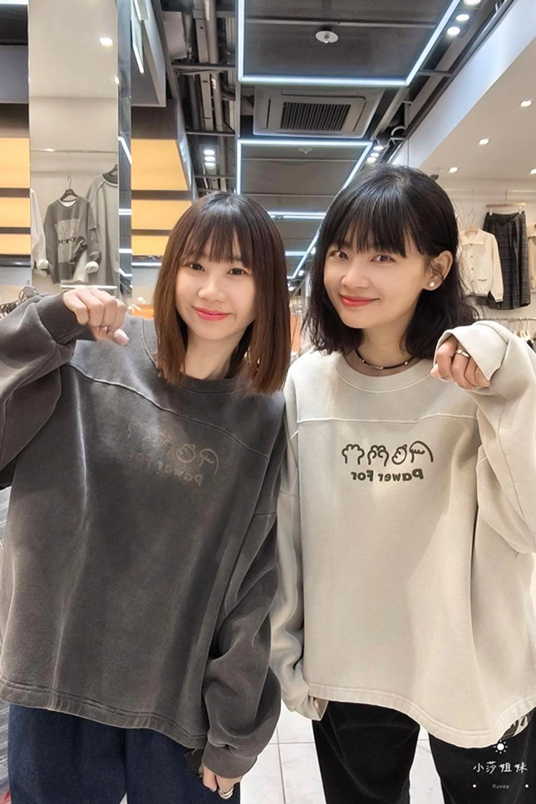 可以直接點影片看此款商品介紹適合S-XL號穿尺寸(cm):肩寬+袖長75 胸圍150 袖圍46 衣長67材質:棉/內裡刷毛產地:韓國洗滌說明:放洗衣袋機洗MODEL 莎妹:159cm/上身S號/下身S號MODEL 小莎:163cm/上身M號/下身M號