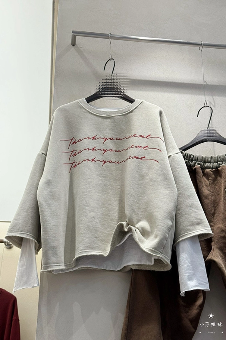 可以直接點影片看此款商品介紹適合S-XL號穿尺寸(cm):肩寬68 胸圍136 袖長32 袖圍44 衣長62材質:棉/內裡刷毛產地:韓國洗滌說明:放洗衣袋機洗MODEL 莎妹:159cm/上身S號/下身S號MODEL 小莎:163cm/上身M號/下身M號