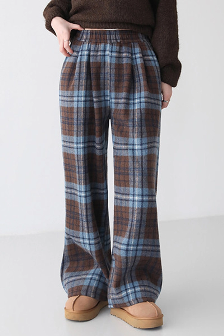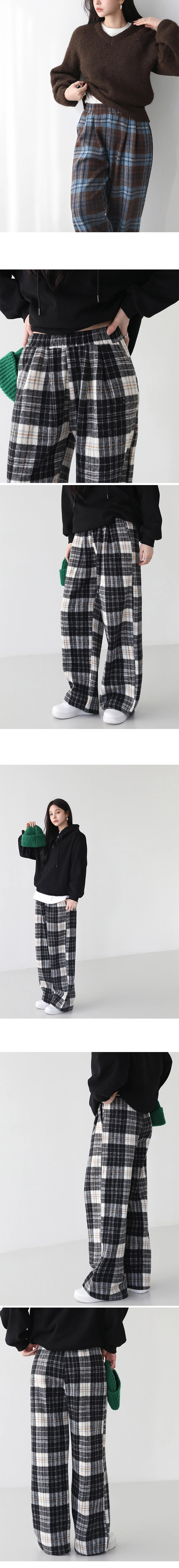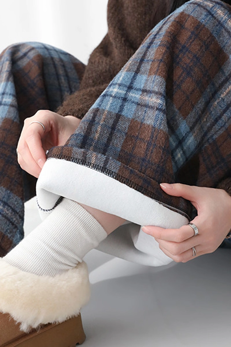 2601P01 彈性腰圍內舖毛格子休閒褲