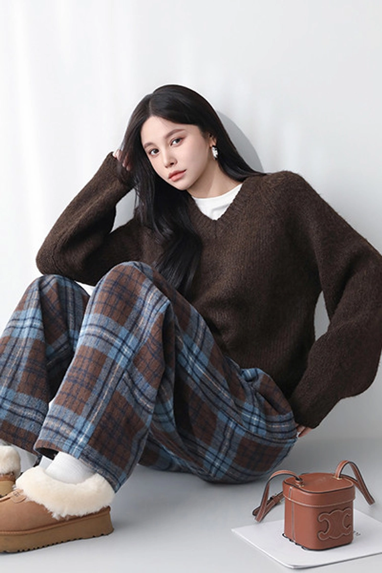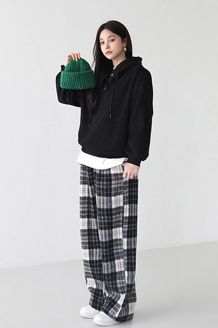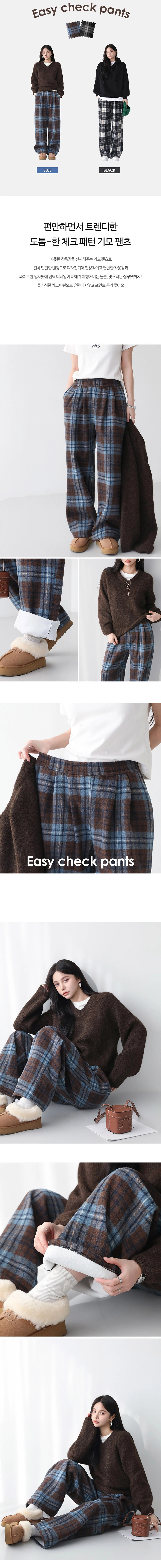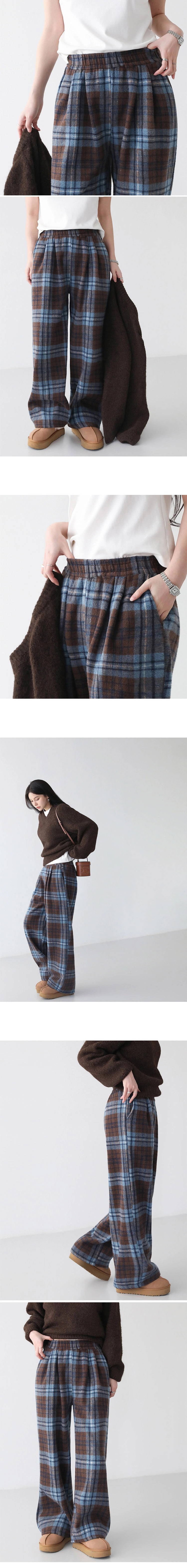 2601P01 彈性腰圍內舖毛格子休閒褲