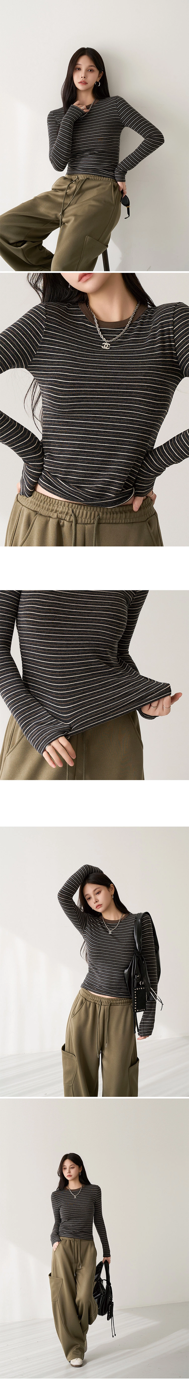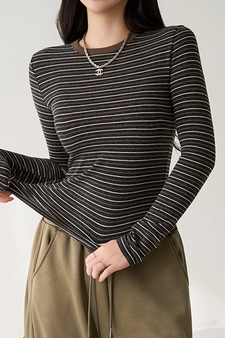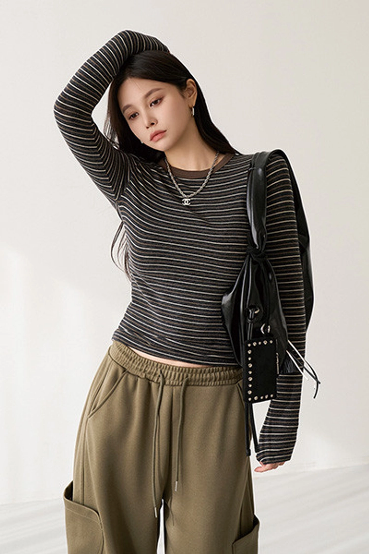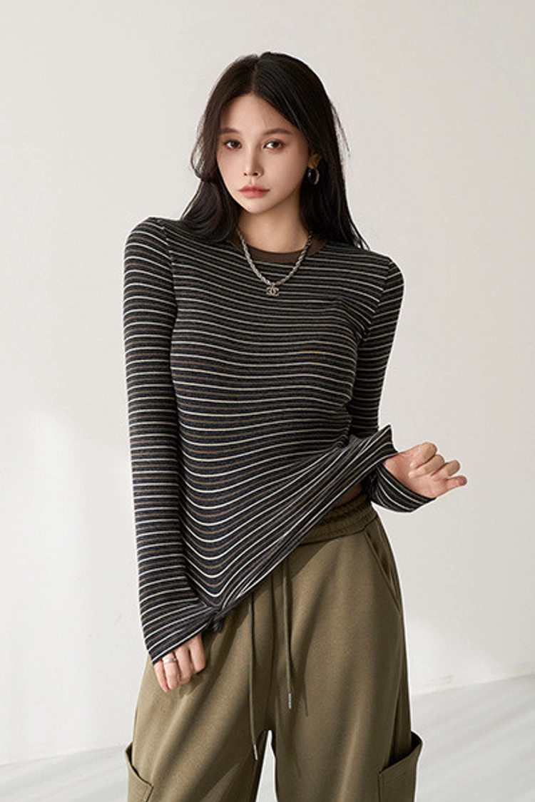 2601P09 撞色條紋彈性中合身上衣