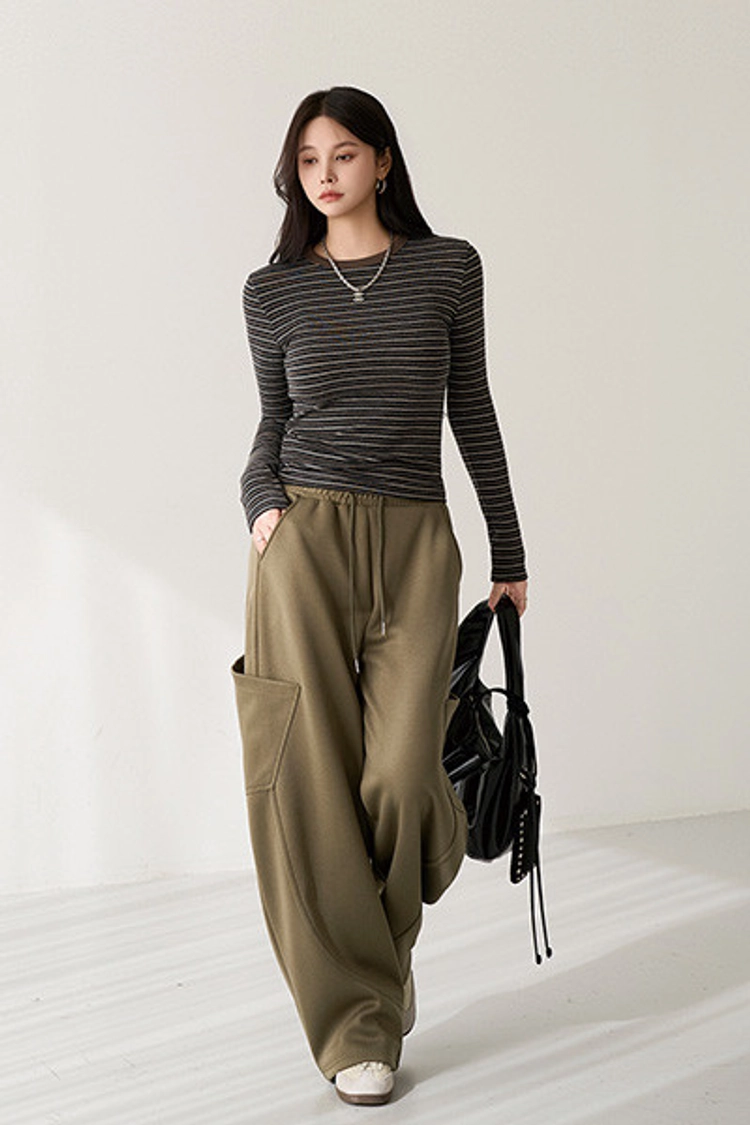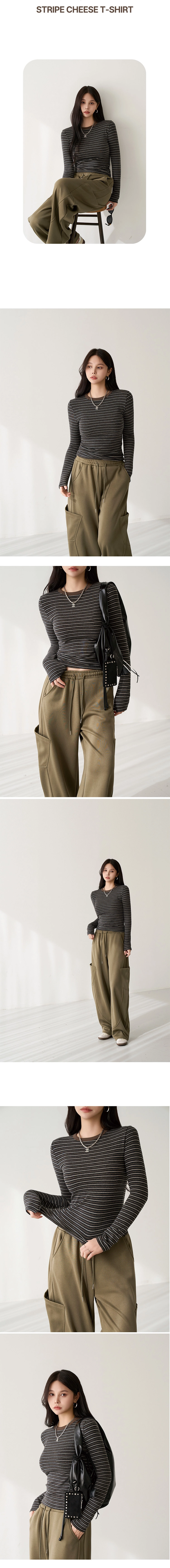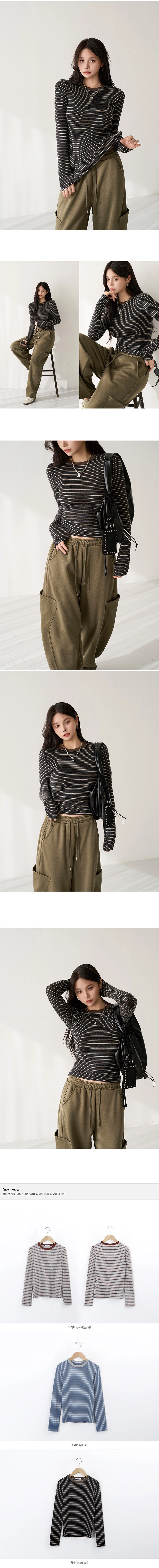 2601P09 撞色條紋彈性中合身上衣
