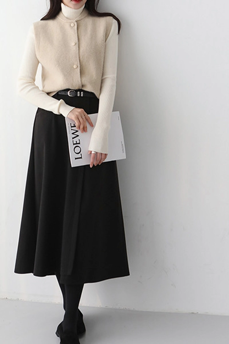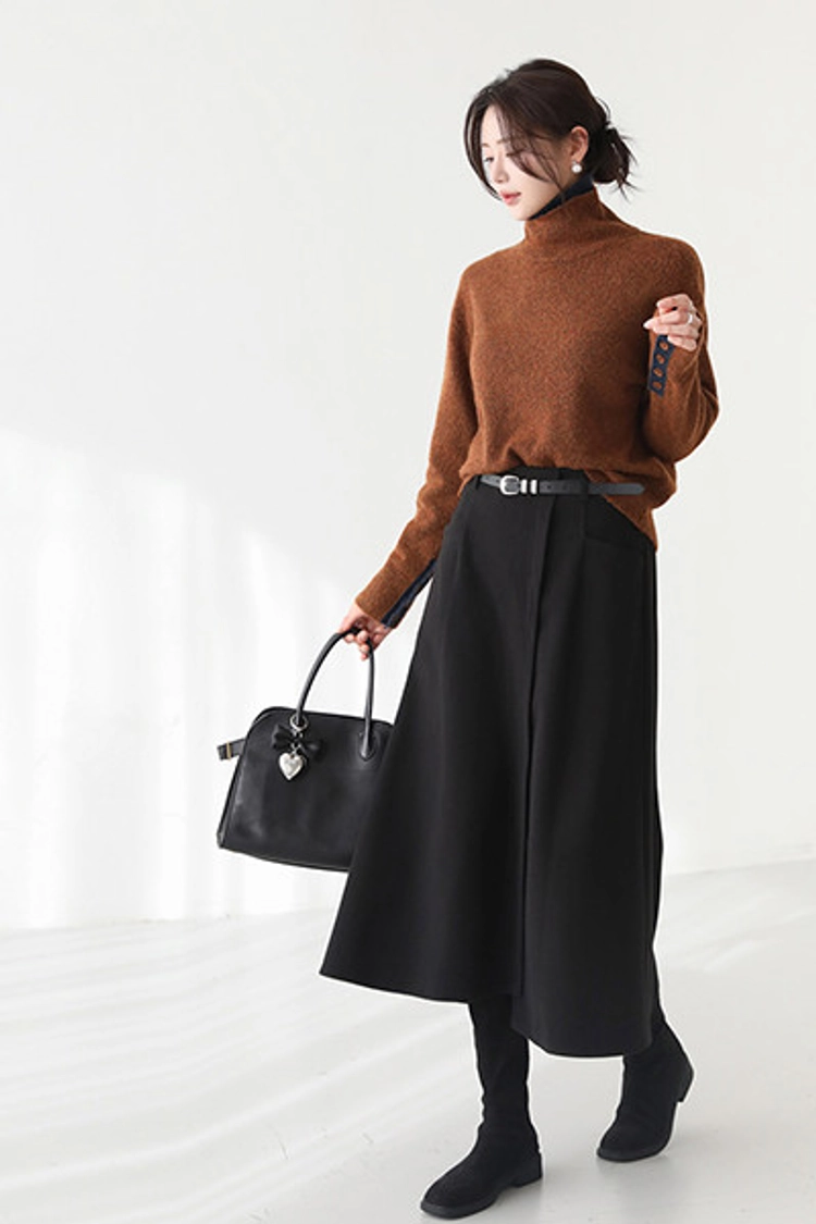 2601P13 半彈性腰圍傘擺打褶造型裙