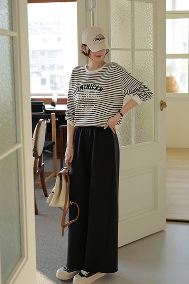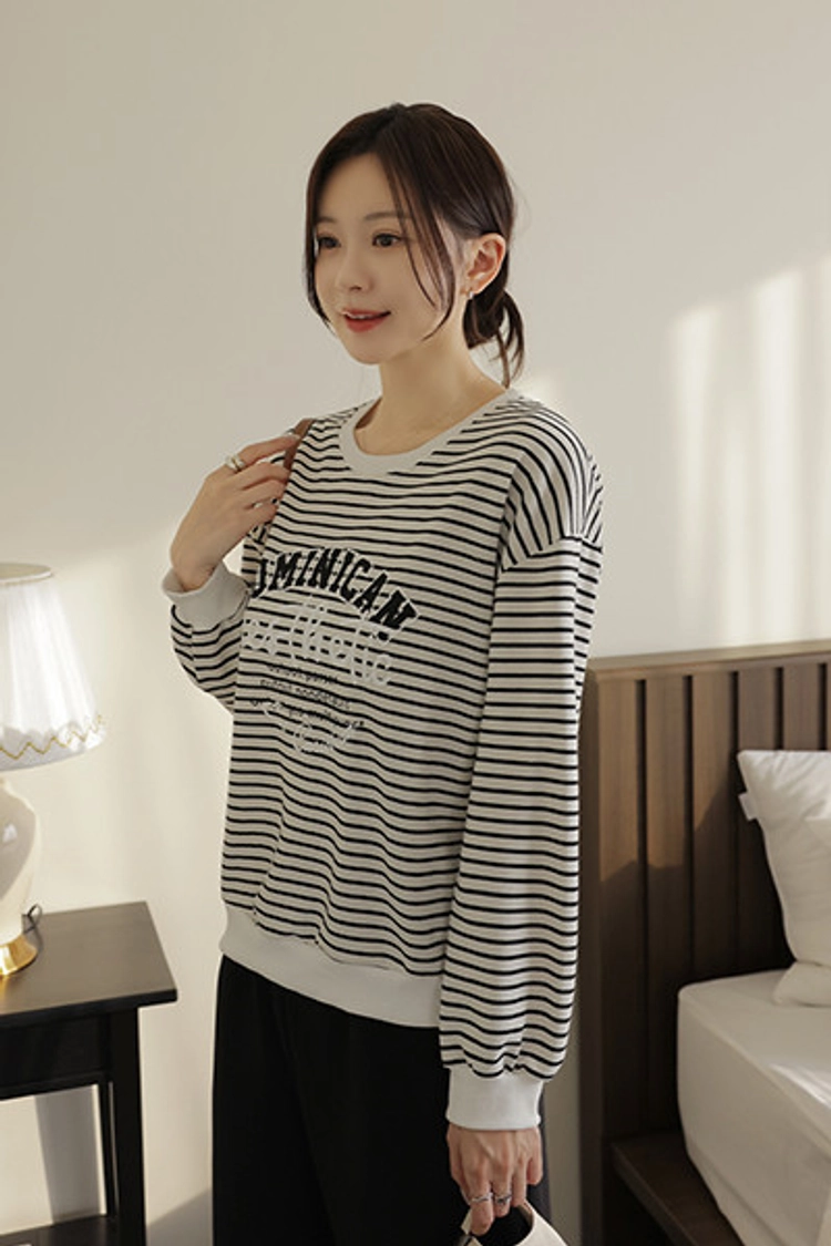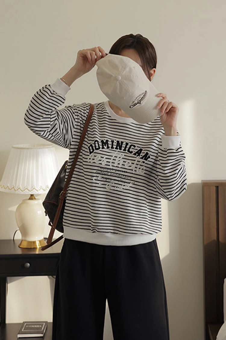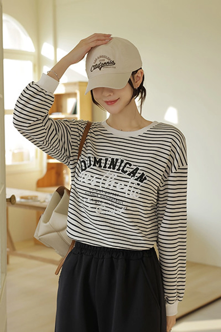2602C003 春.美式休閒條紋英文刷色薄款上衣