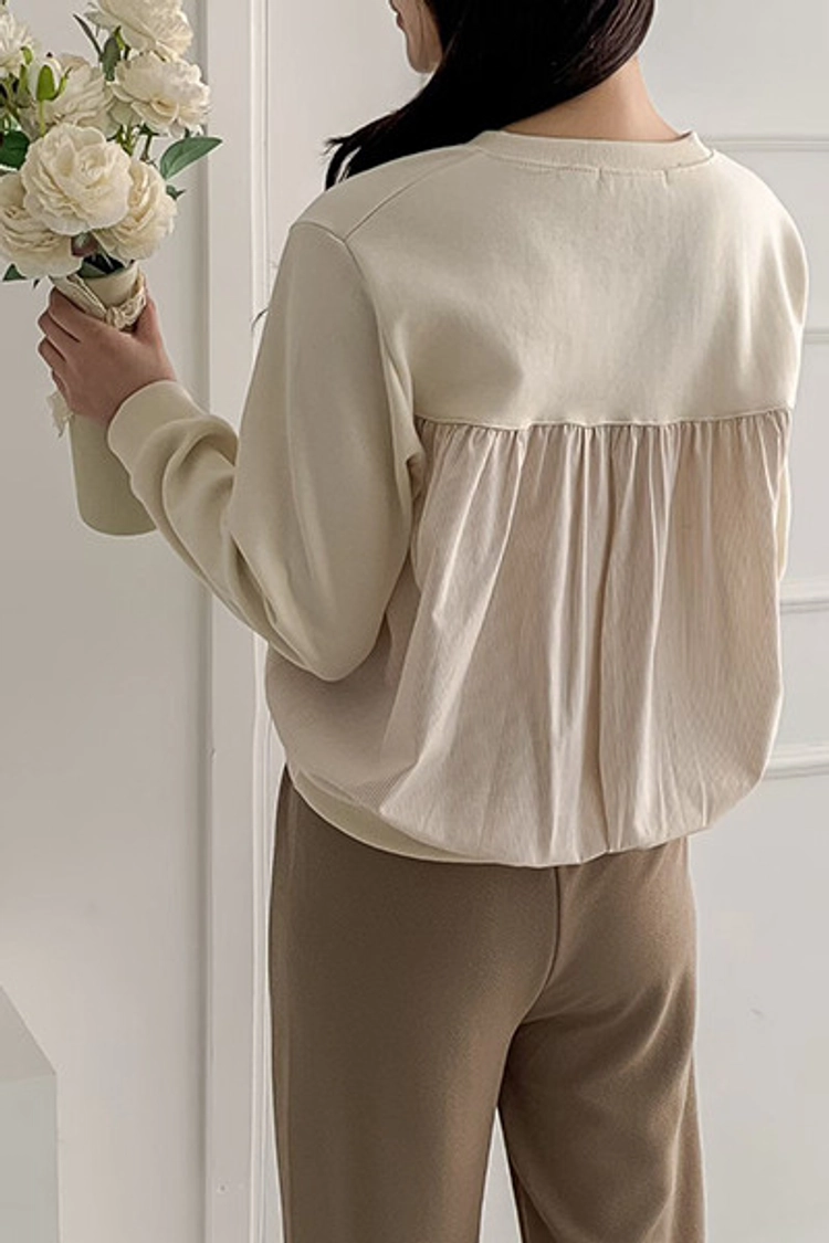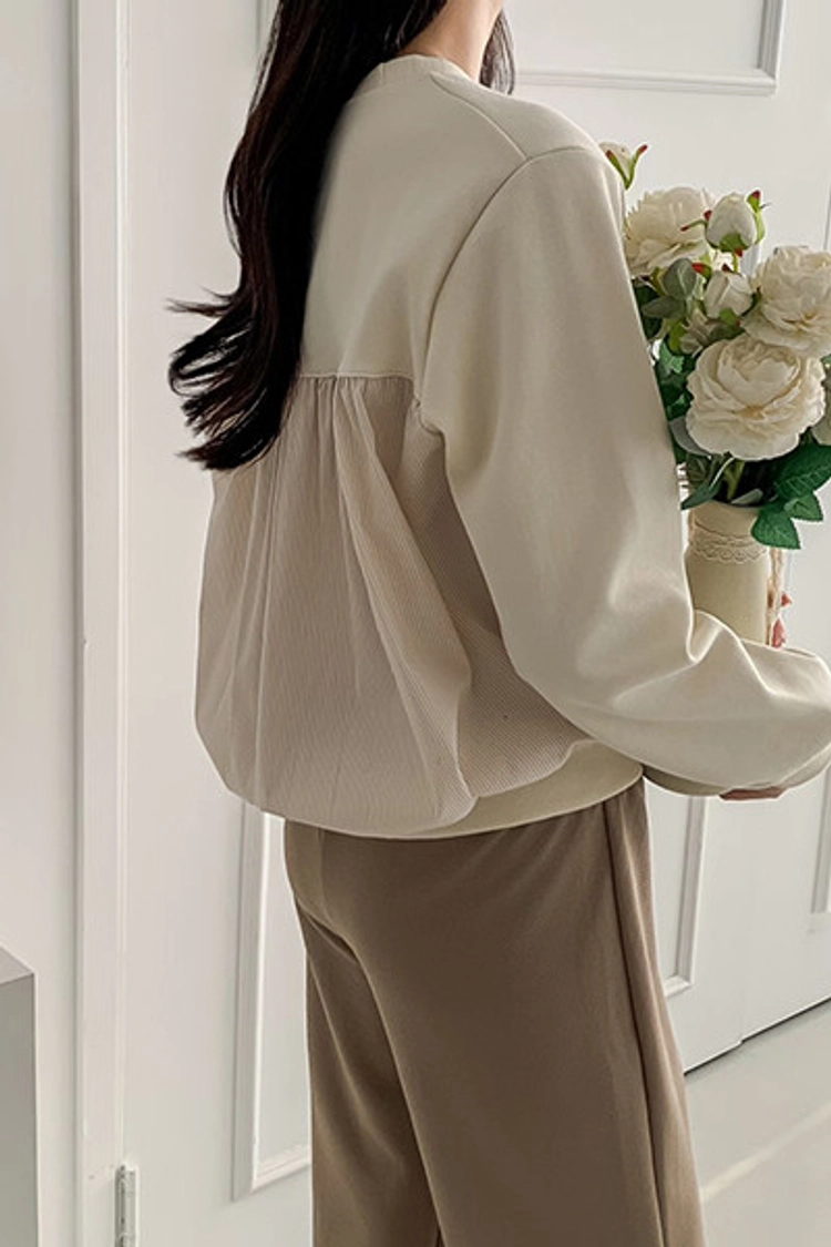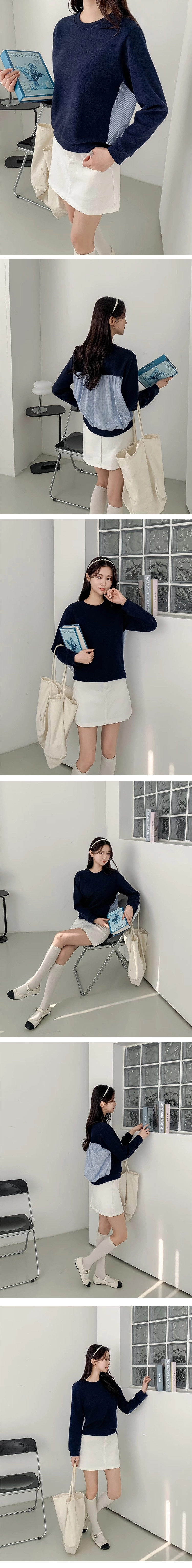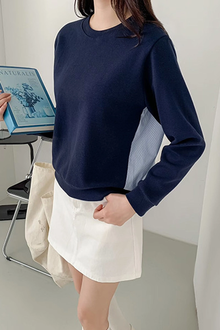 2602C007 春.異材質拚接條紋造型上衣