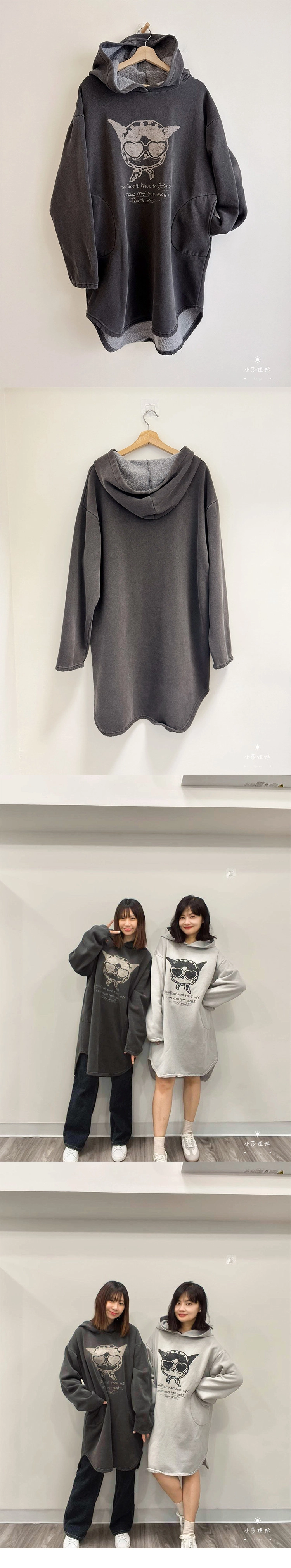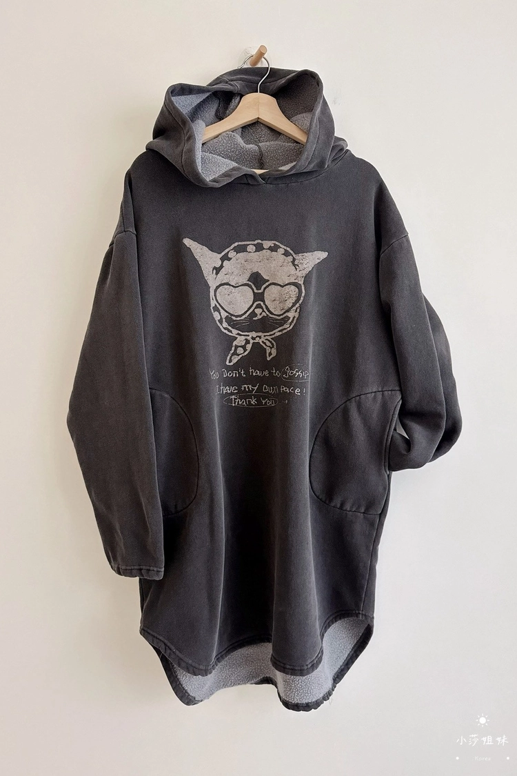 2602C018 可愛小貓側口袋連帽內刷毛連身裙