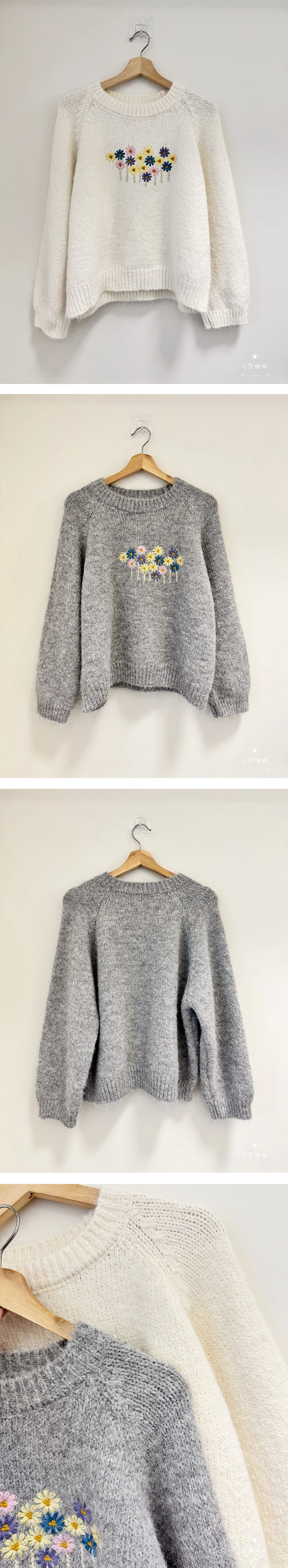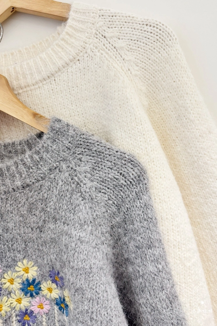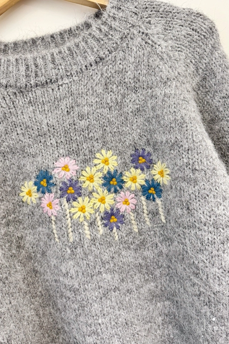 2602C023 繽紛小花刺繡徽章顯瘦針織上衣