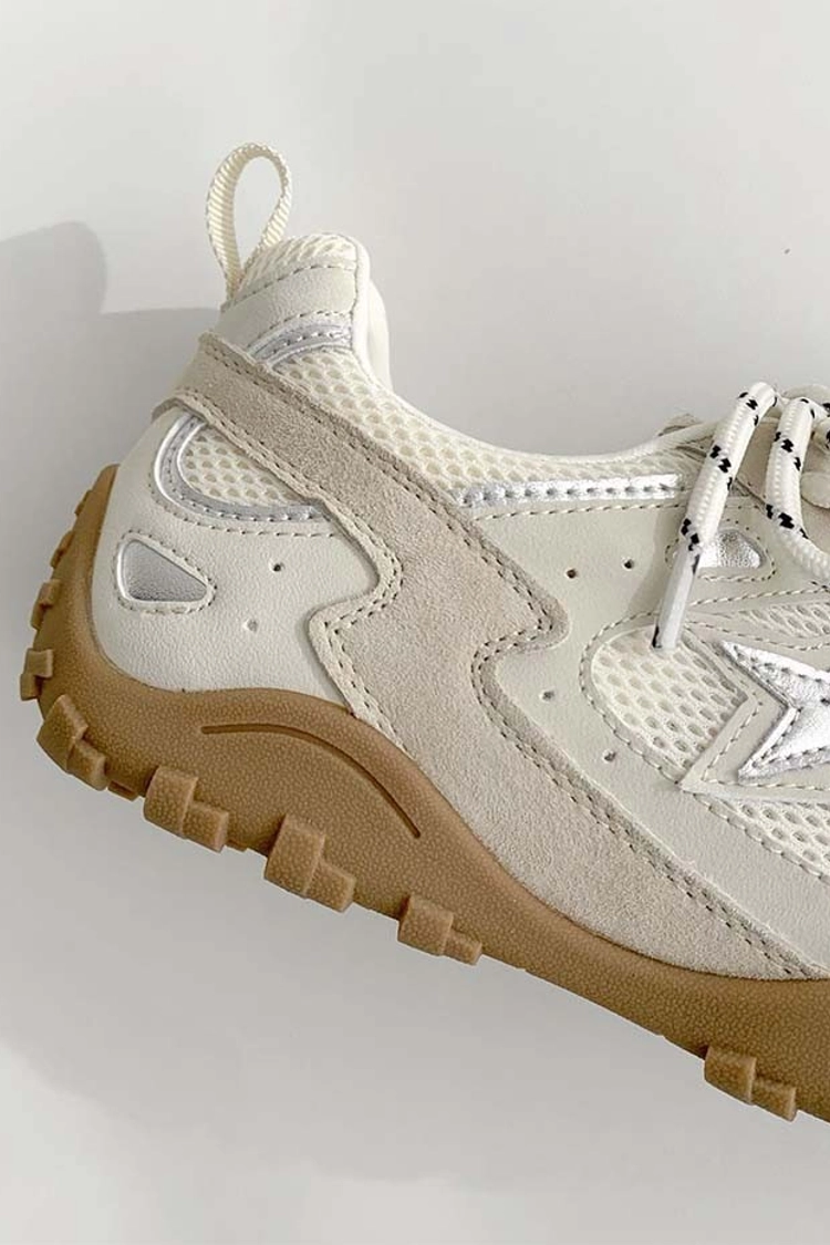 2603C08 透氣拼接銀色星星真皮休閒鞋(230-250)