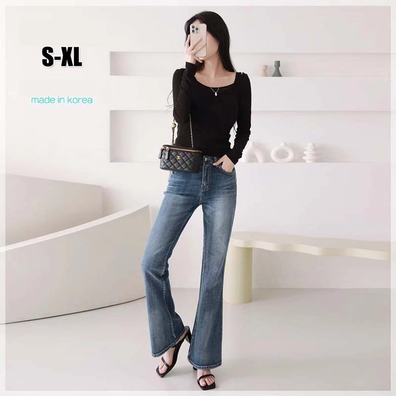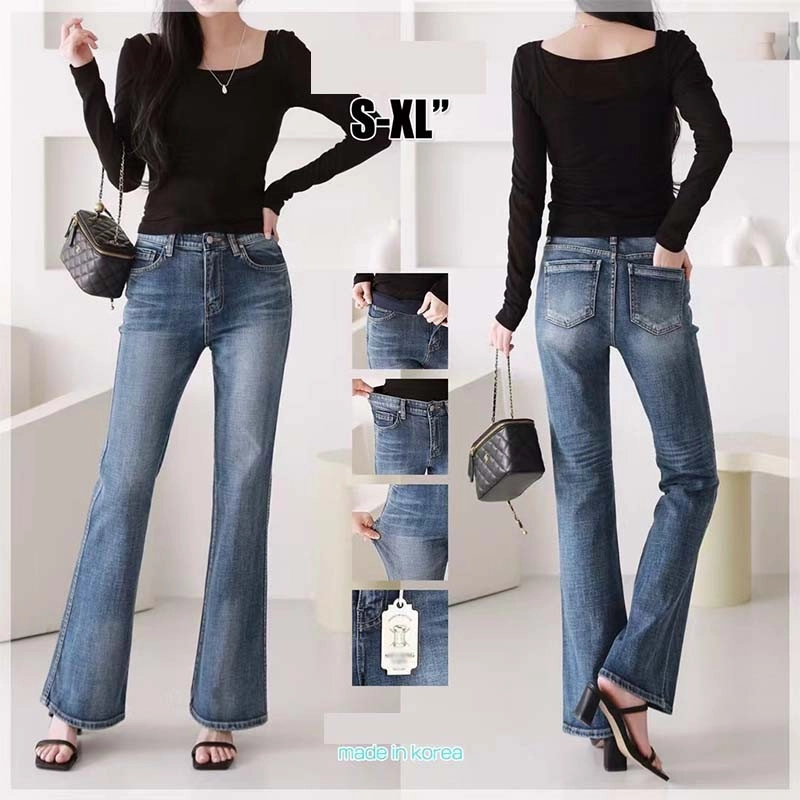 此款商品介紹在影片時間37:22只有布料本身的彈性版型偏小建議拿大一個尺碼臀圍33吋以下可以S號尺寸(cm):S:腰圍64 臀圍84 大腿圍48 下擺圍42 褲襠26 褲長99M:腰圍68 臀圍88 大腿圍50 下擺圍44 褲襠27 褲長100L:腰圍72 臀圍92 大腿圍52 下擺圍46 褲襠28 褲長101XL:腰圍76 臀圍96 大腿圍54 下擺圍48 褲襠29 褲長102材質:牛仔產地:韓國洗滌說明:放洗衣袋機洗MODEL 莎妹:159cm/上身S號/下身S號MODEL 小莎:163cm/上身M號/下身M號