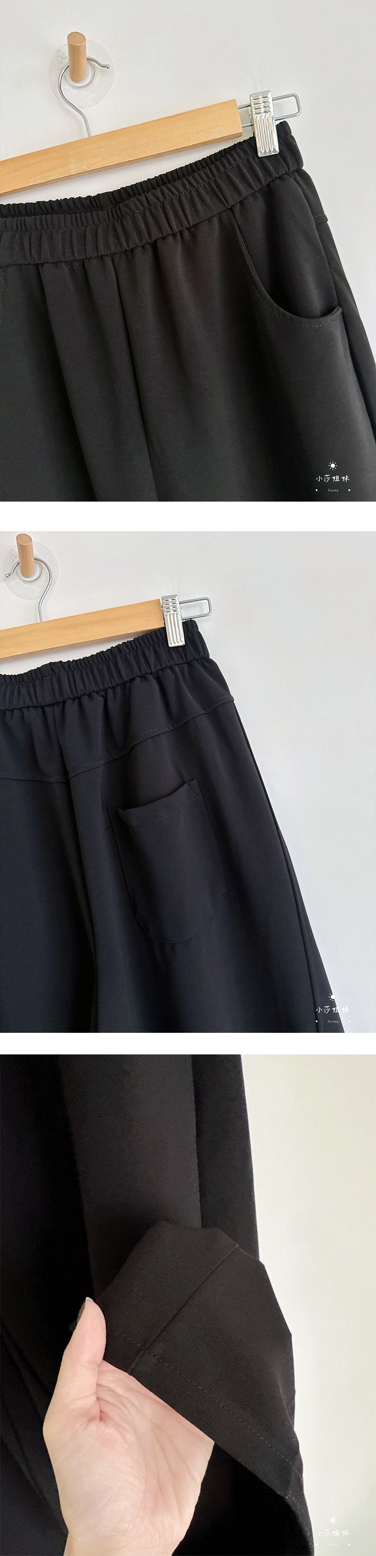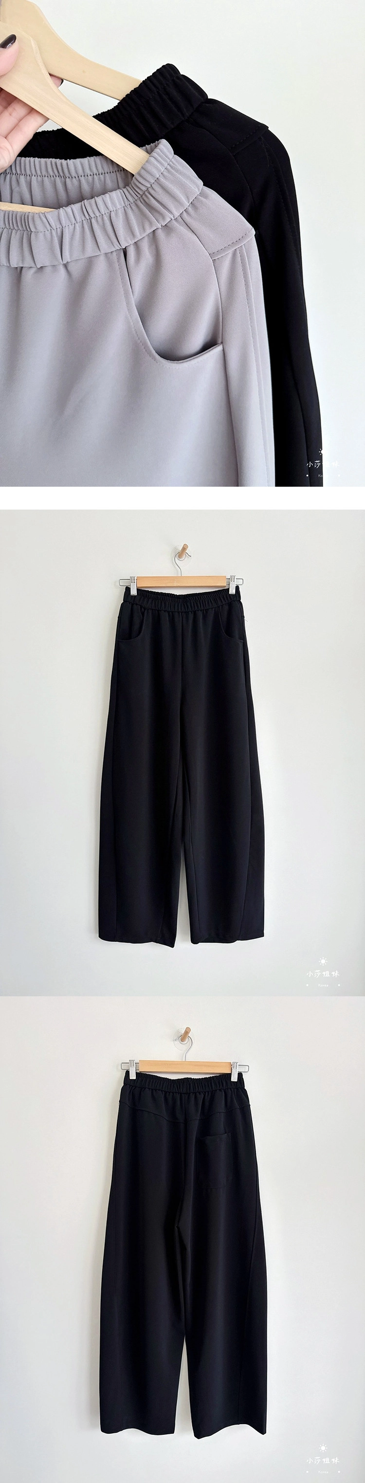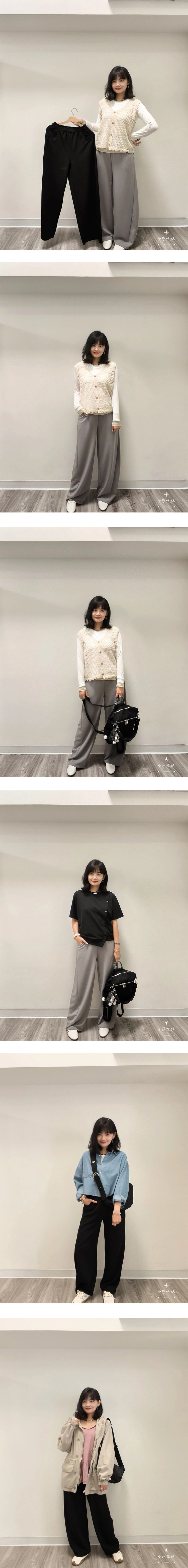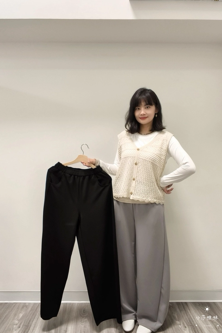 尺寸(cm):腰圍64cm 臀圍108cm 褲襠32cm 大腿圍68cm 褲腳圍50cm 褲長100cm材質:聚酯產地:韓國洗滌說明:放洗衣袋機洗MODEL小莎:163cm/上身M號/下身M號莎妹:159cm/上身S號/下身S號