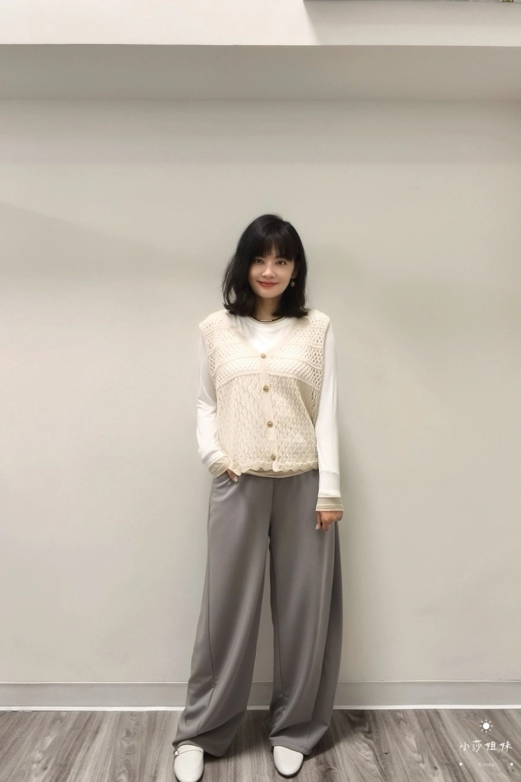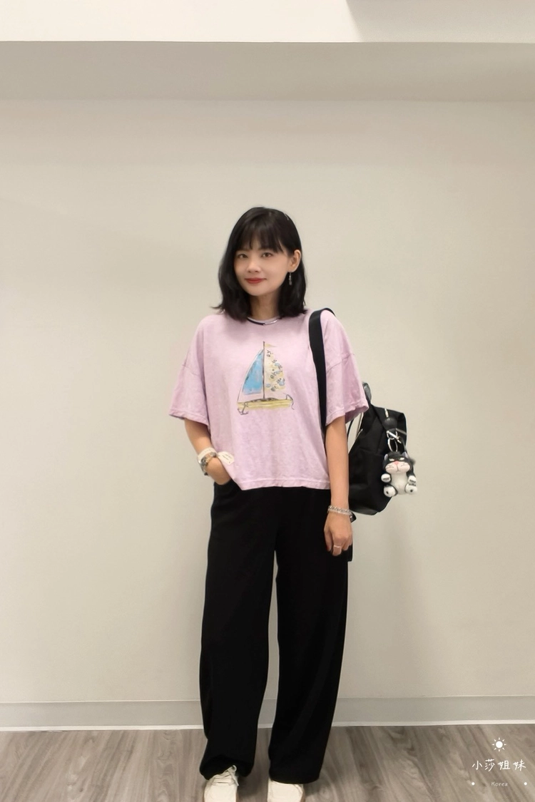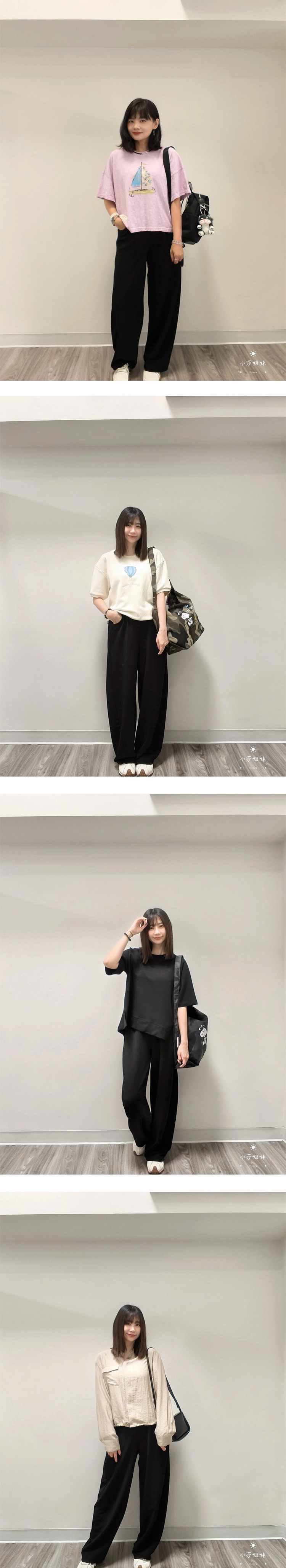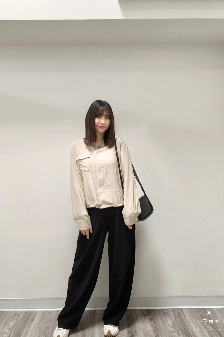 尺寸(cm):腰圍64cm 臀圍108cm 褲襠32cm 大腿圍68cm 褲腳圍50cm 褲長100cm材質:聚酯產地:韓國洗滌說明:放洗衣袋機洗MODEL小莎:163cm/上身M號/下身M號莎妹:159cm/上身S號/下身S號