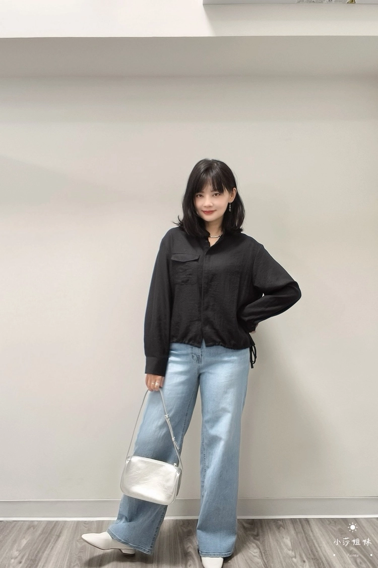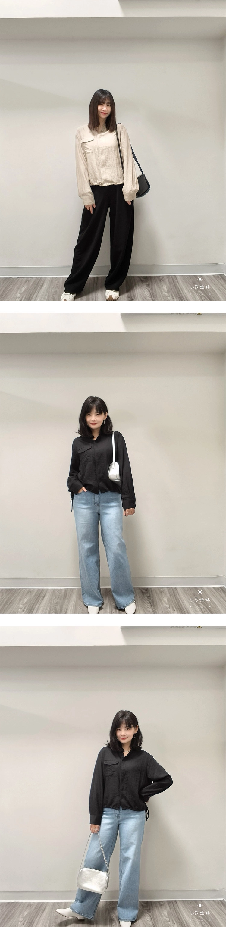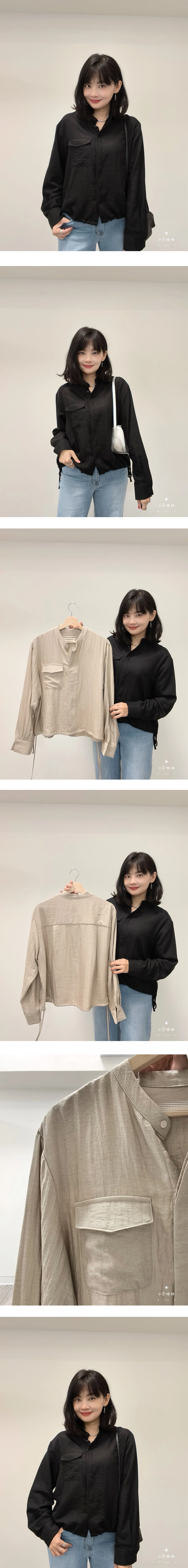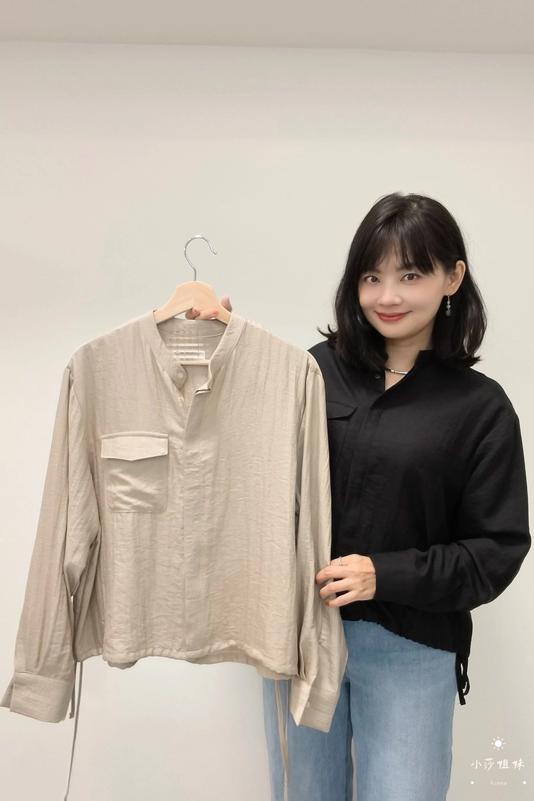 尺寸(cm):肩寬49cm 胸圍124cm 袖長56cm 袖圍50cm 衣長56cm材質:聚酯人造絲產地:韓國洗滌說明:放洗衣袋機洗MODEL小莎:163cm/上身M號/下身M號莎妹:159cm/上身S號/下身S號