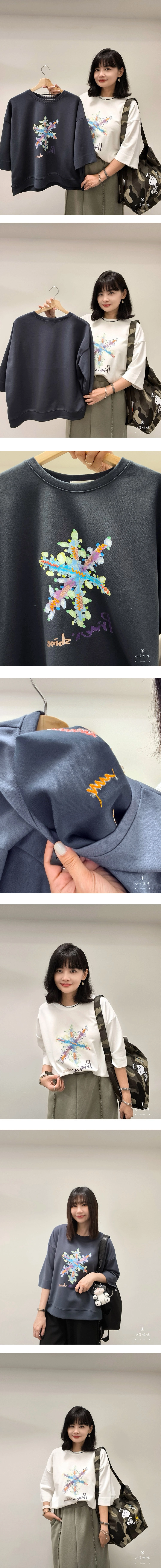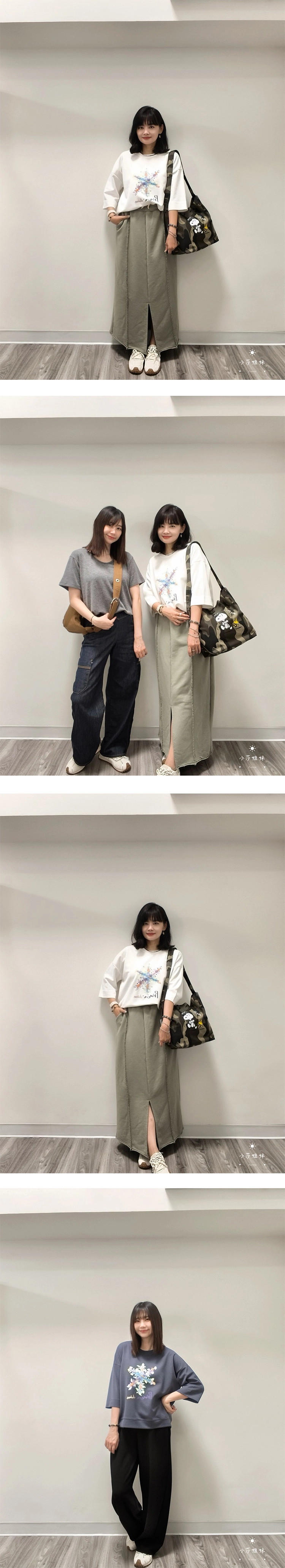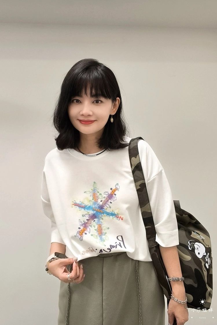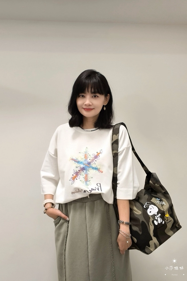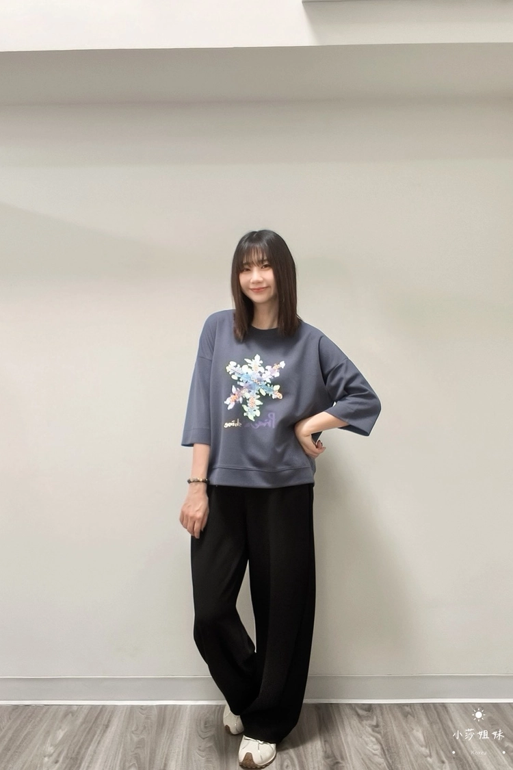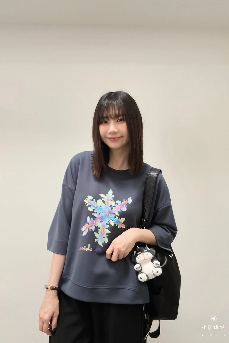 尺寸(cm):肩寬61cm 胸圍118cm 袖長26cm 袖圍38cm 衣長57cm材質:聚酯人造絲產地:韓國洗滌說明:放洗衣袋機洗MODEL小莎:163cm/上身M號/下身M號莎妹:159cm/上身S號/下身S號