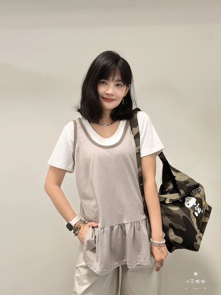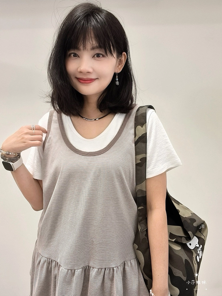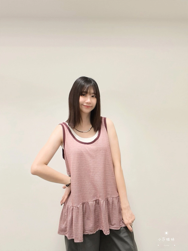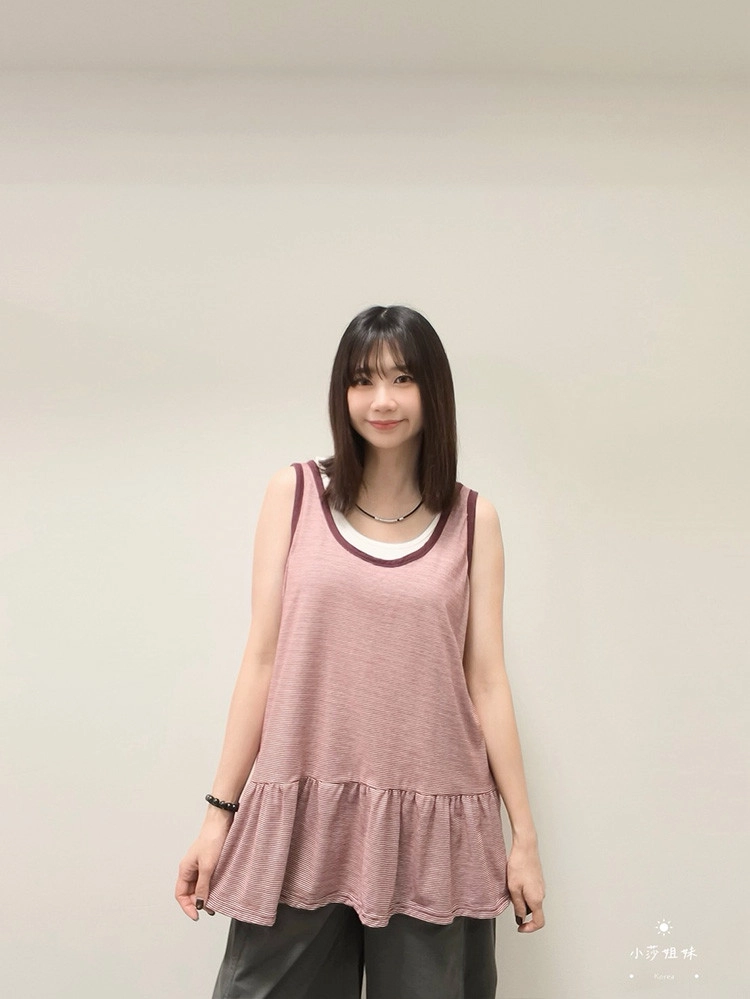 2603S36 條紋配色寬鬆長版造型背心