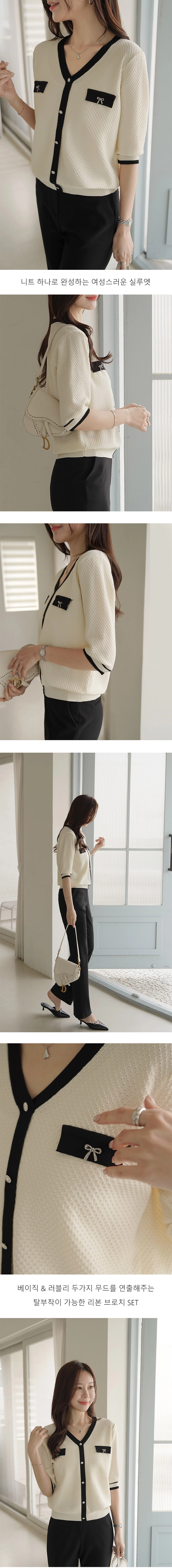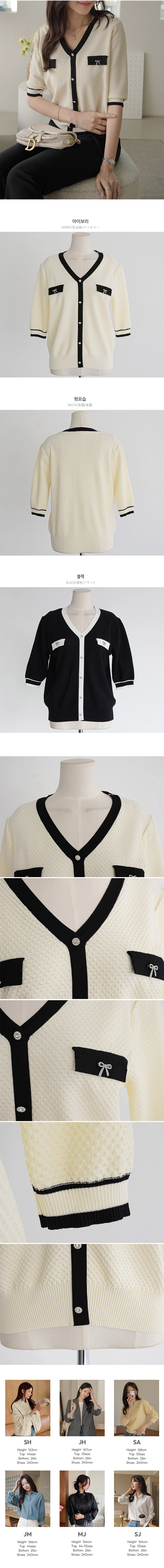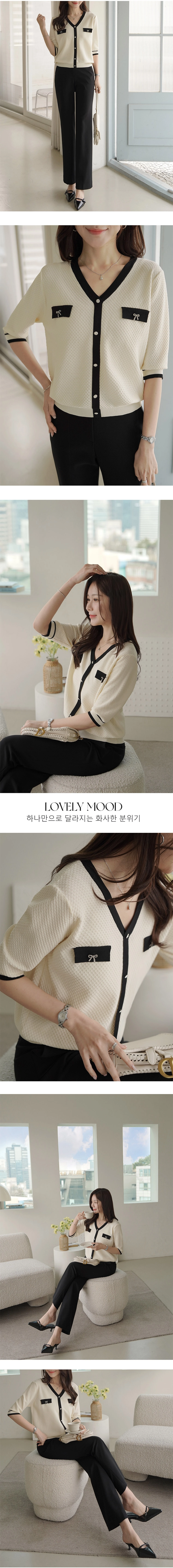 2604C001 小香風V領七分袖夏季針織衫