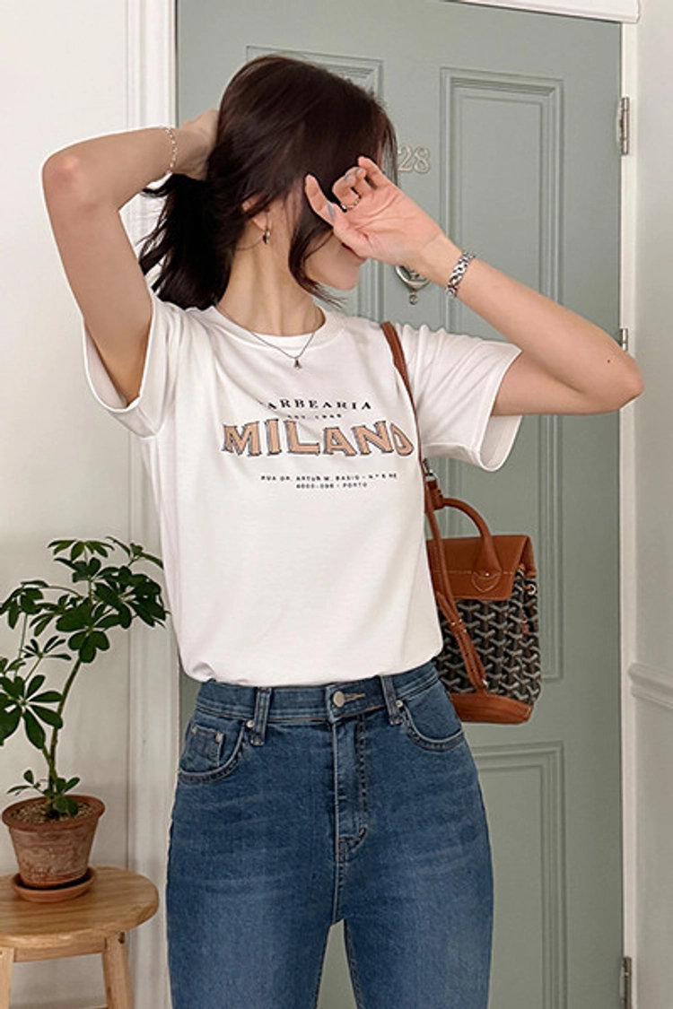 2604C004 休閒舒適英文字顯瘦上衣
