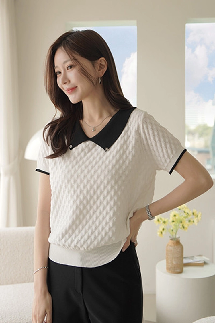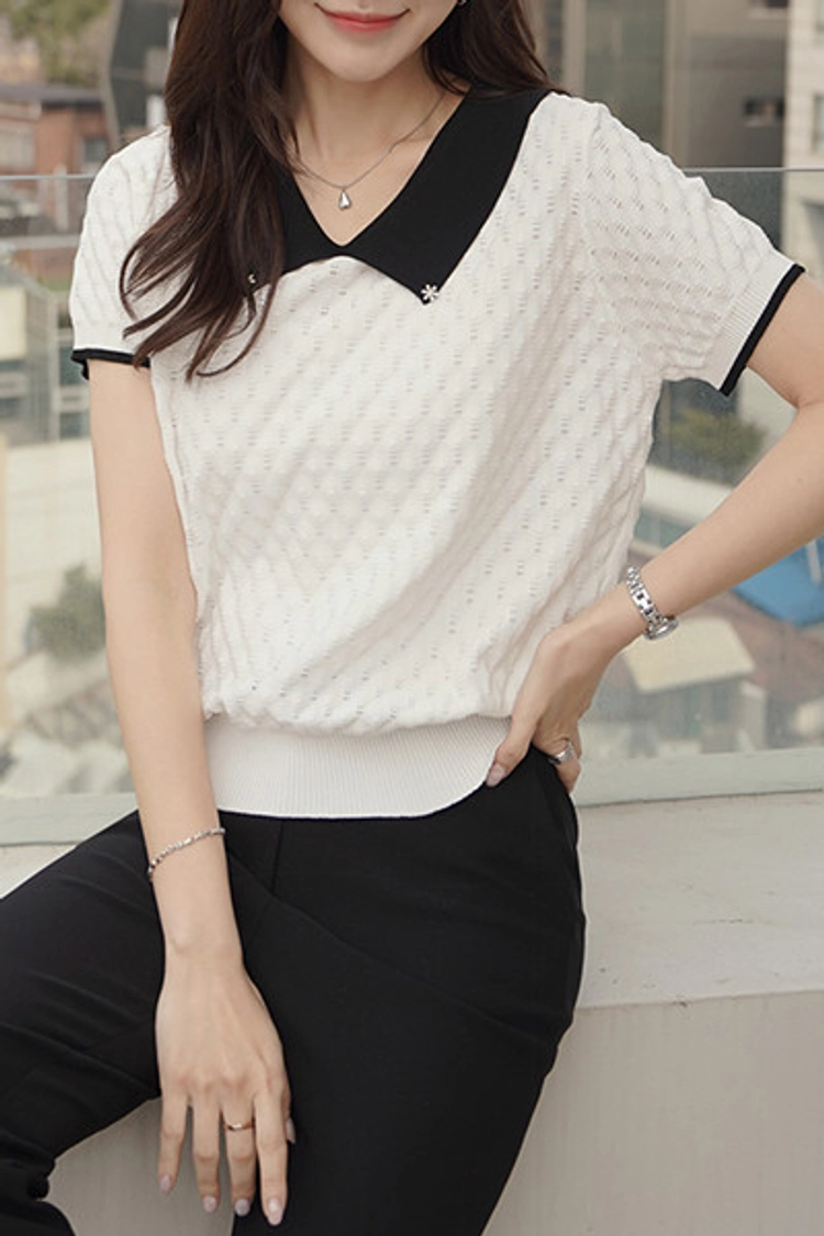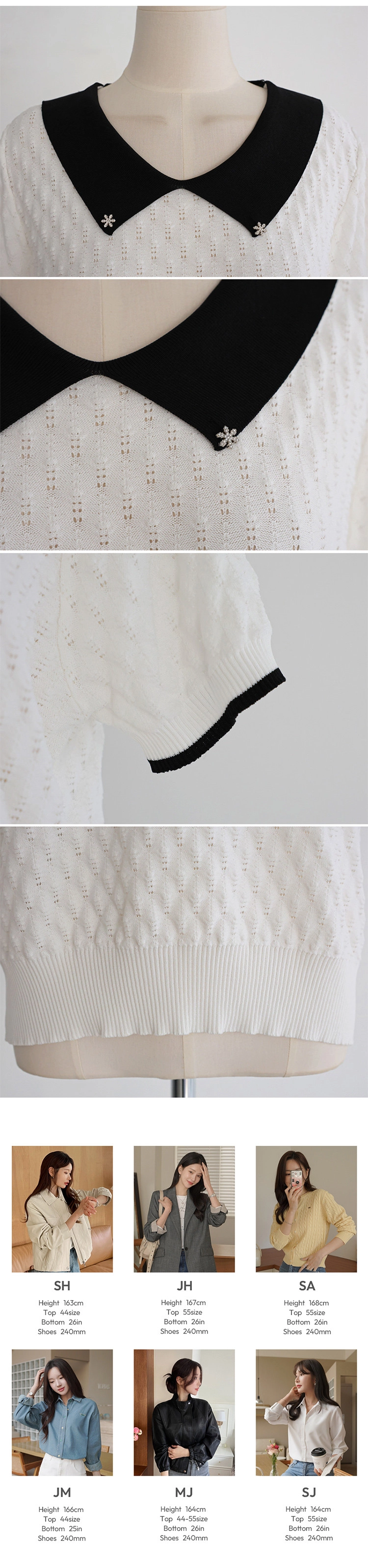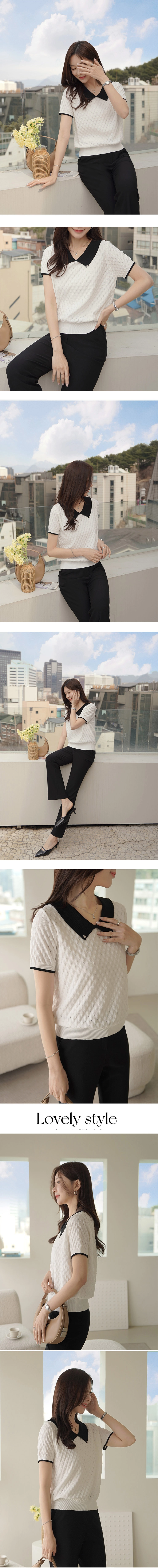 2604C007 撞色拚接羔羊領撞色薄針織衫