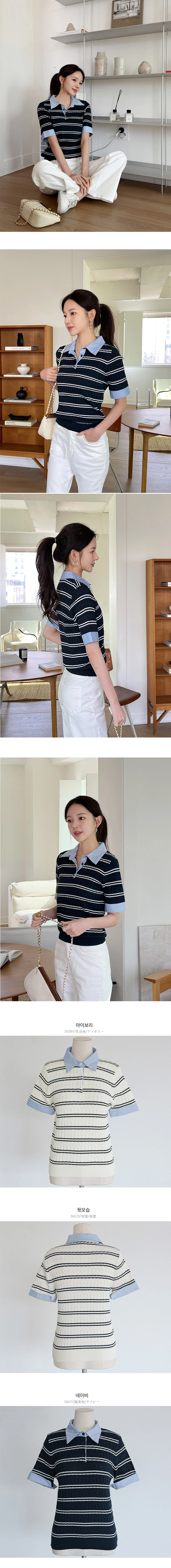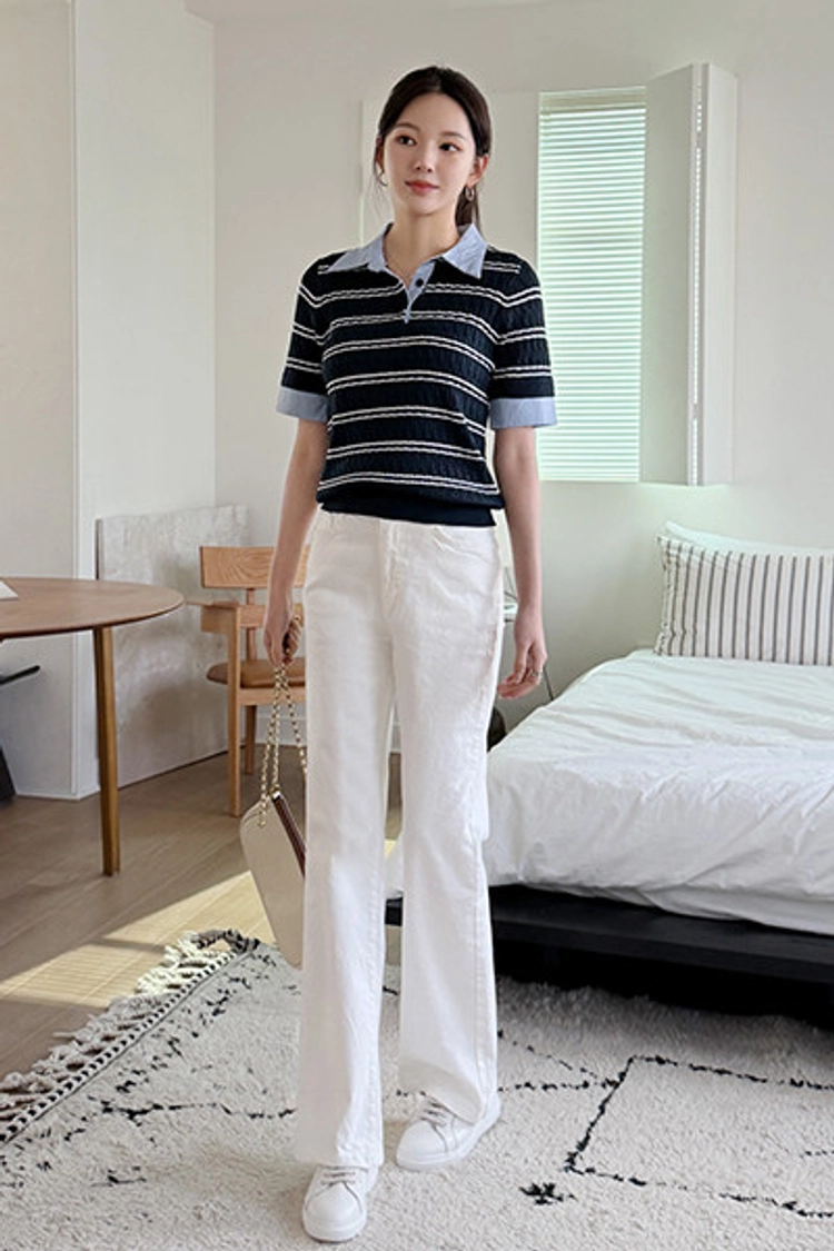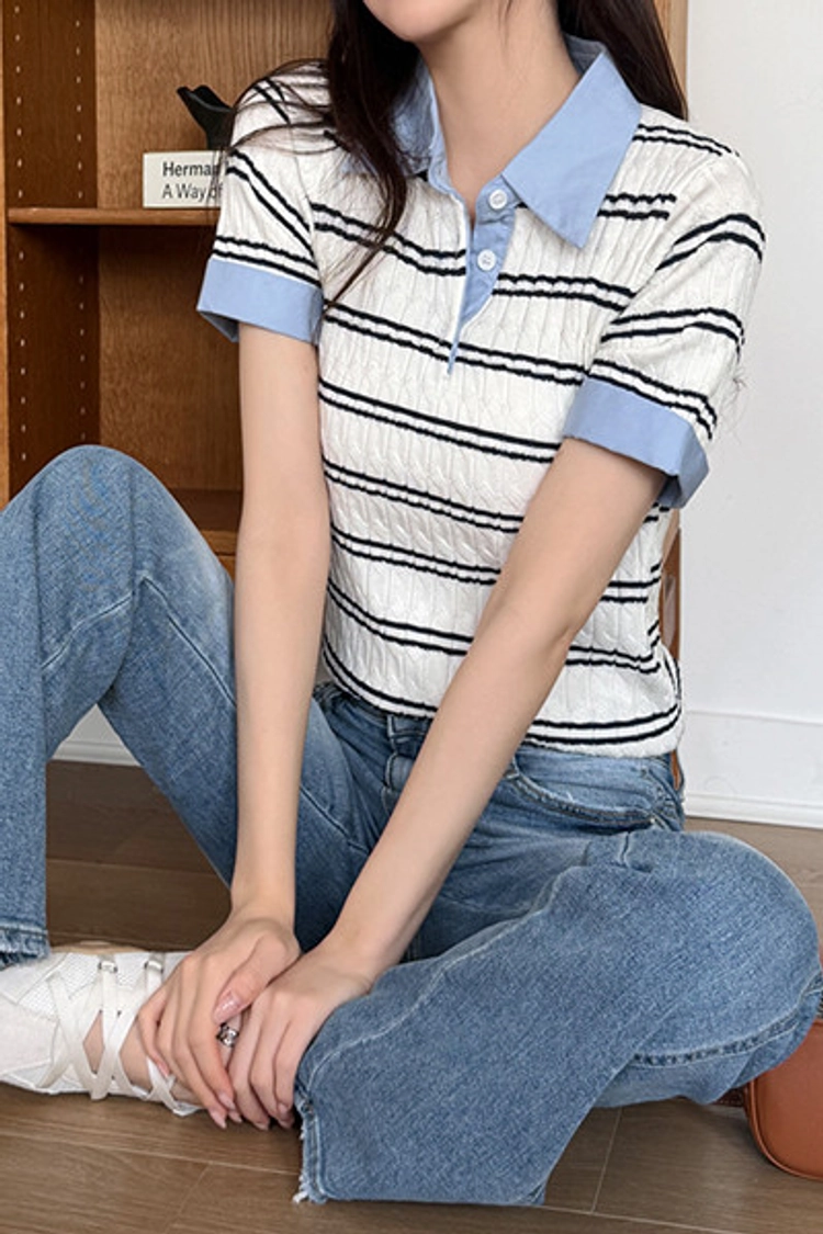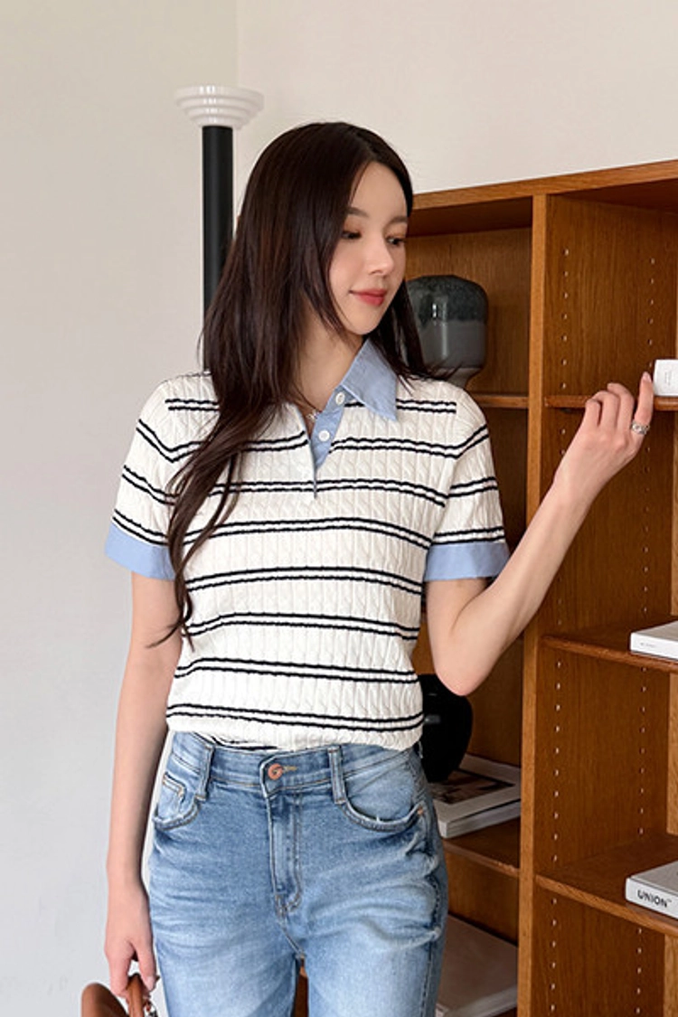 2604C009 異材質拚接條紋薄夏季針織衫