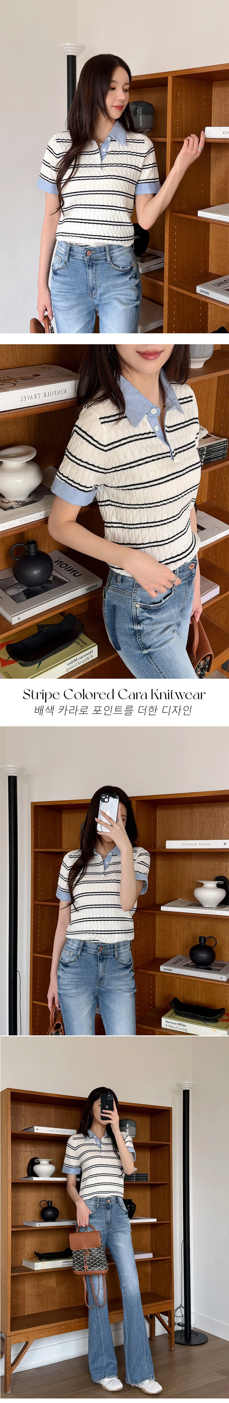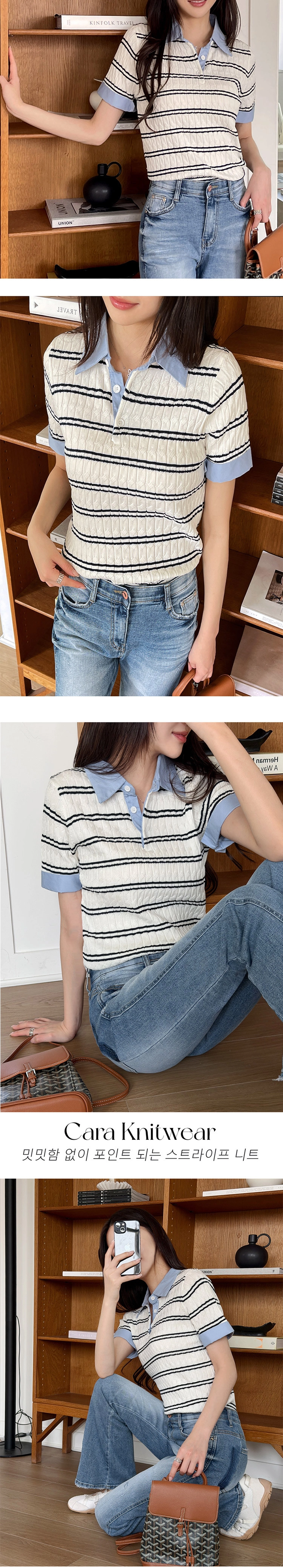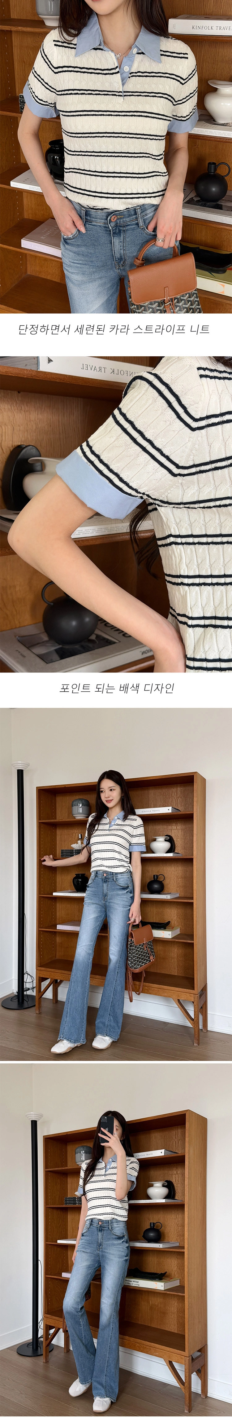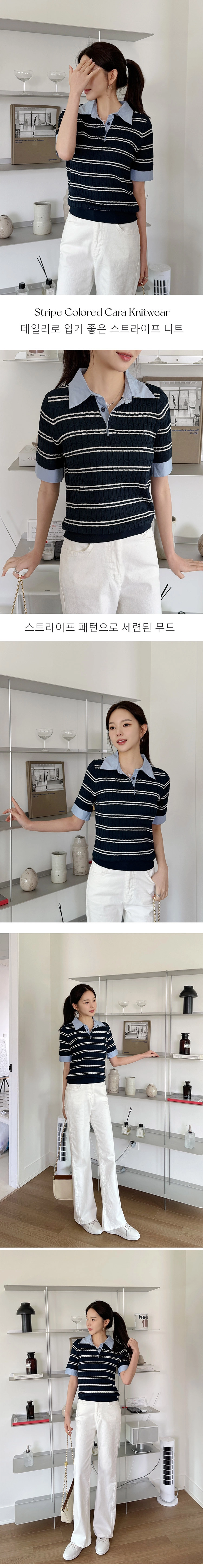 2604C009 異材質拚接條紋薄夏季針織衫