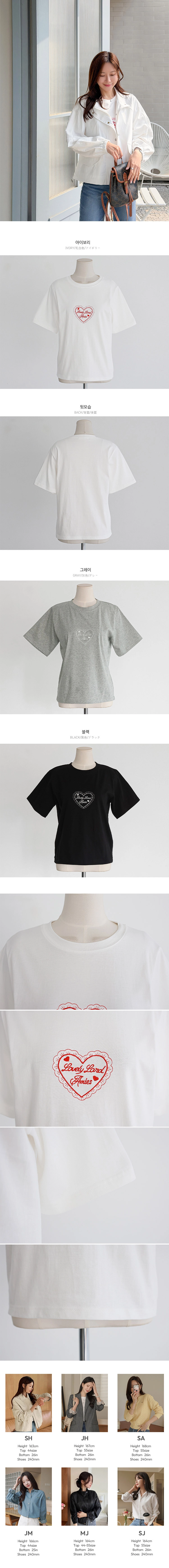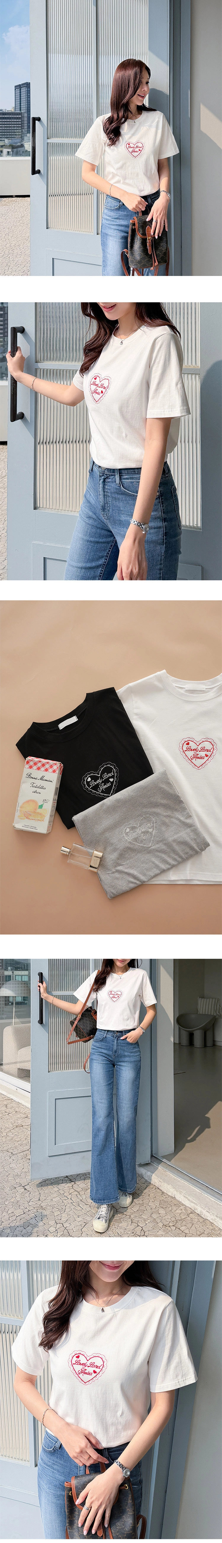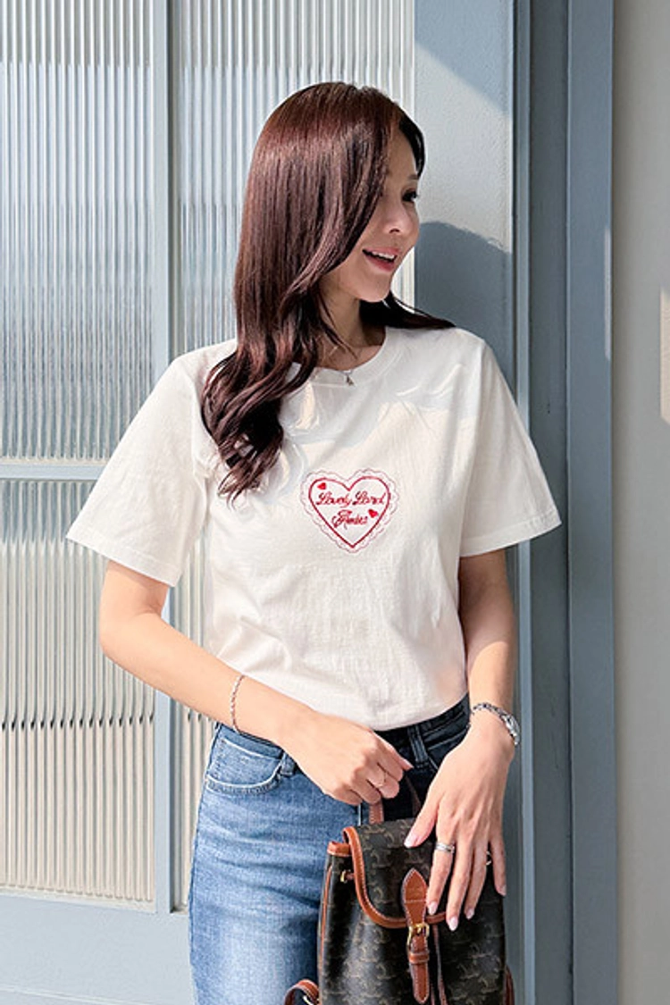 2604C010 可愛愛心刺繡舒適顯瘦上衣