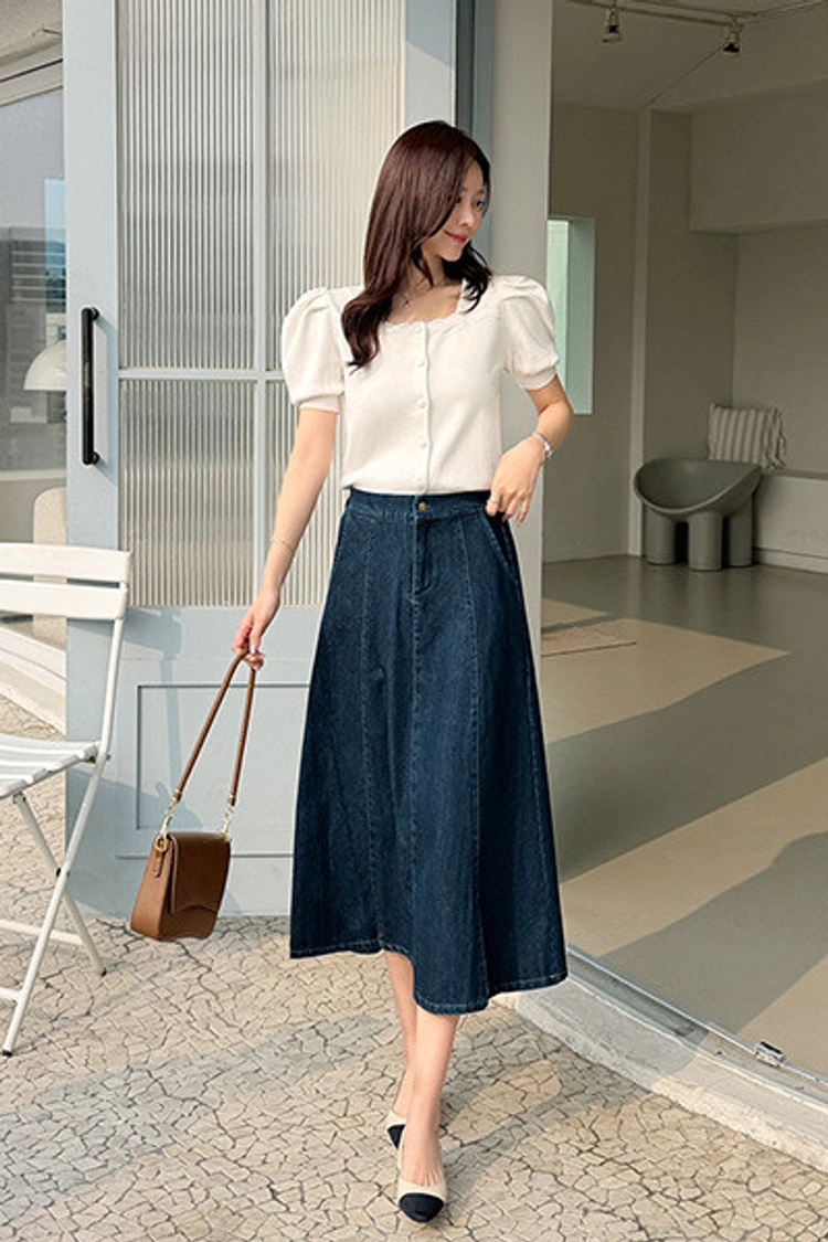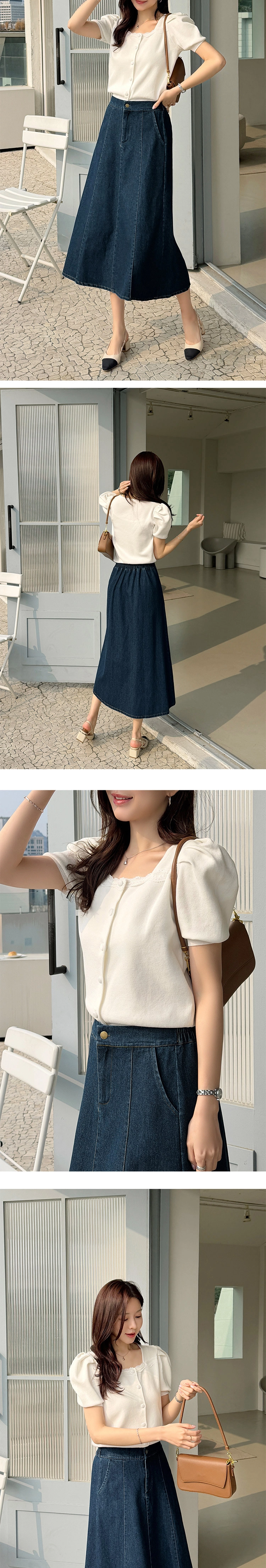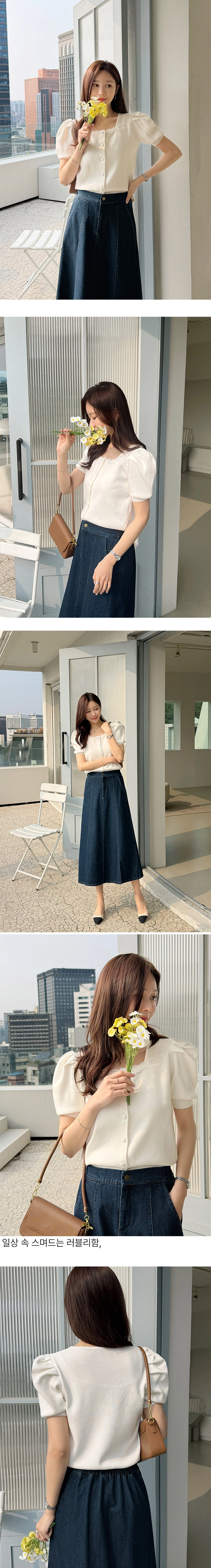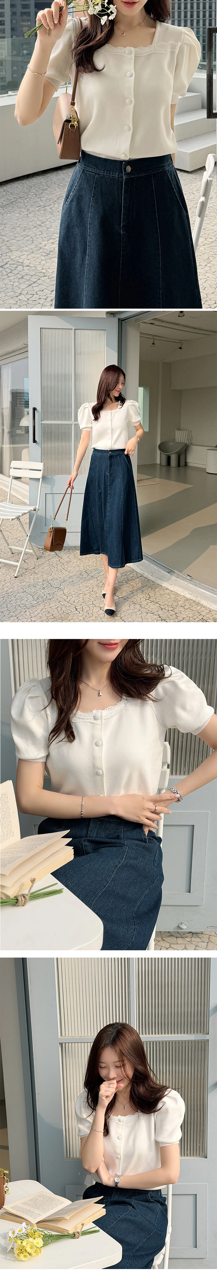 2604C011 蕾絲雕花滾邊小澎袖薄針織上衣