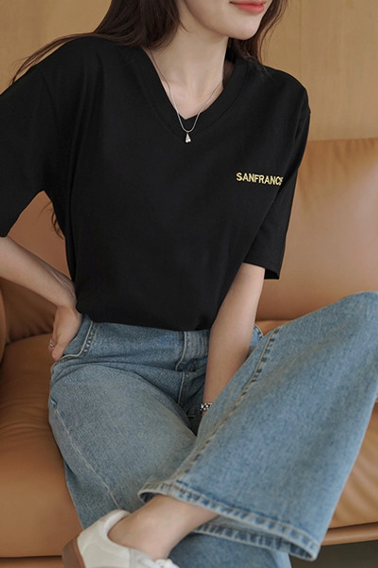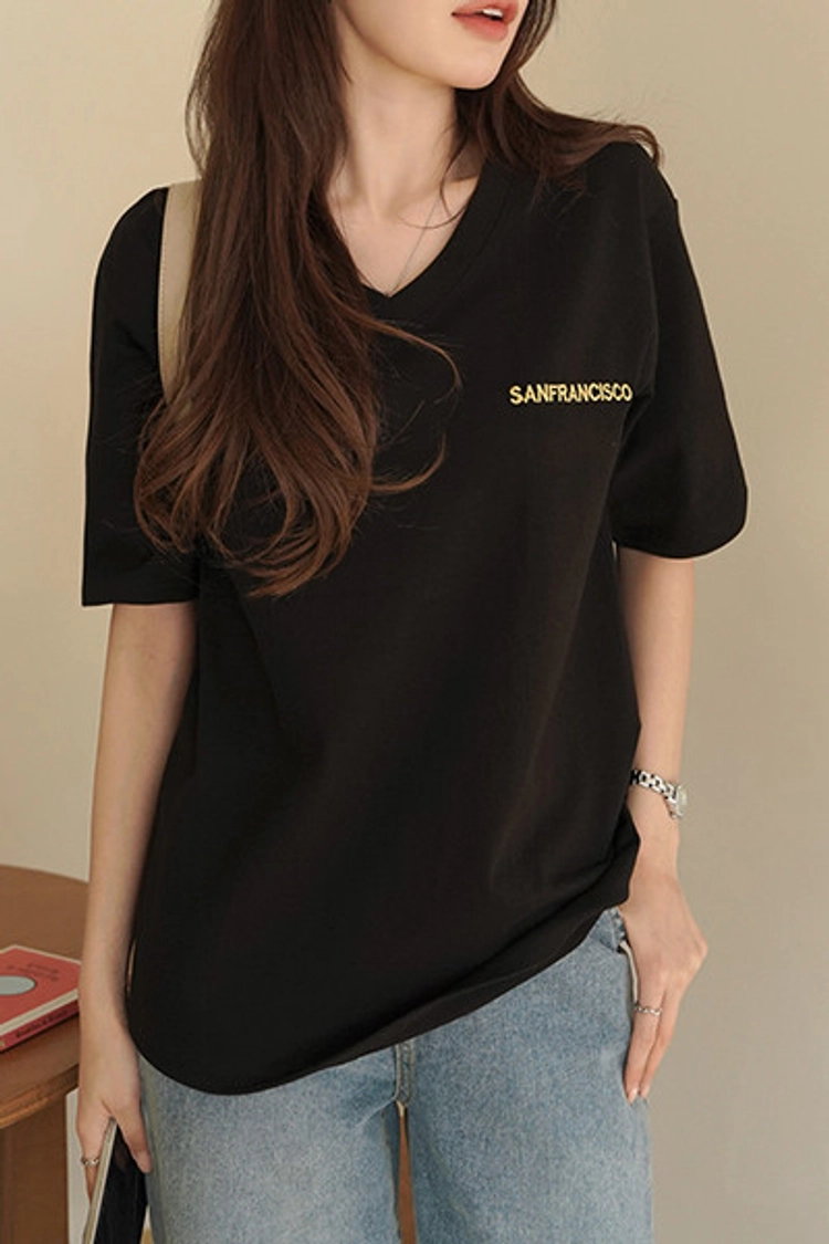 2604C012 立體英文刺繡寬鬆棉質上衣