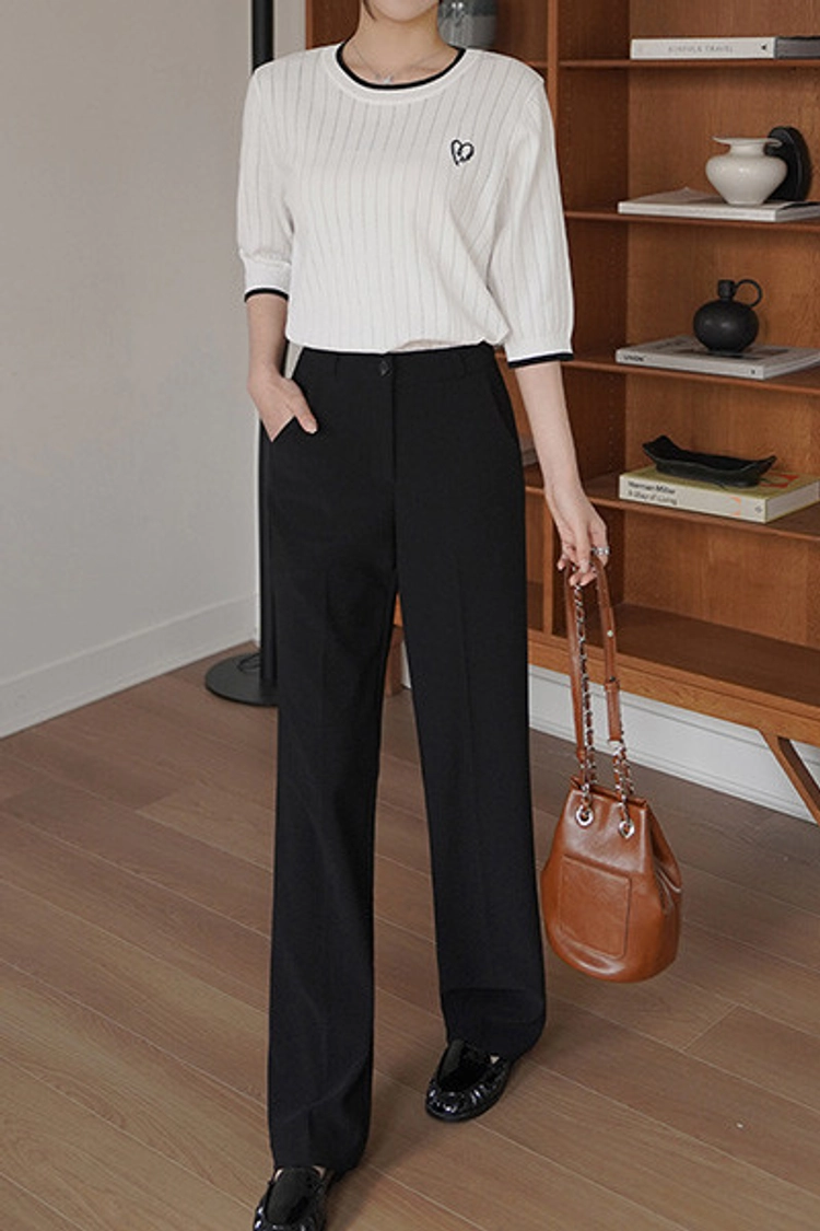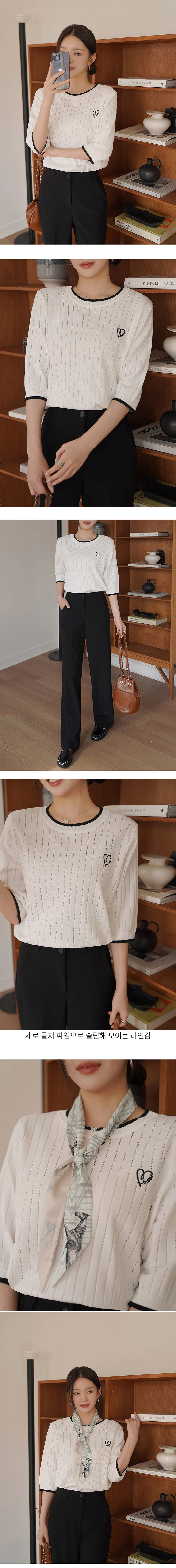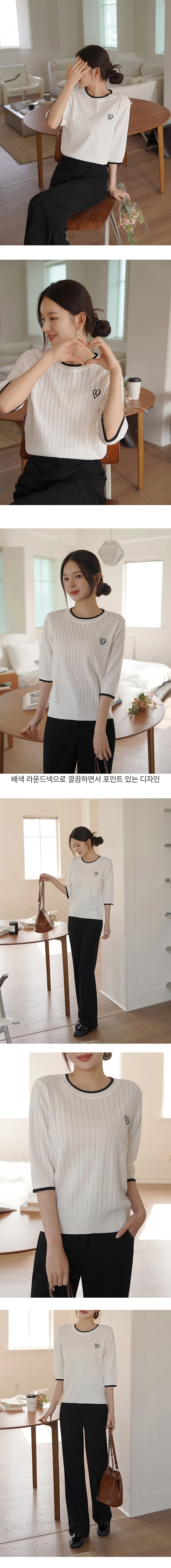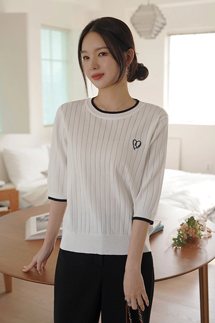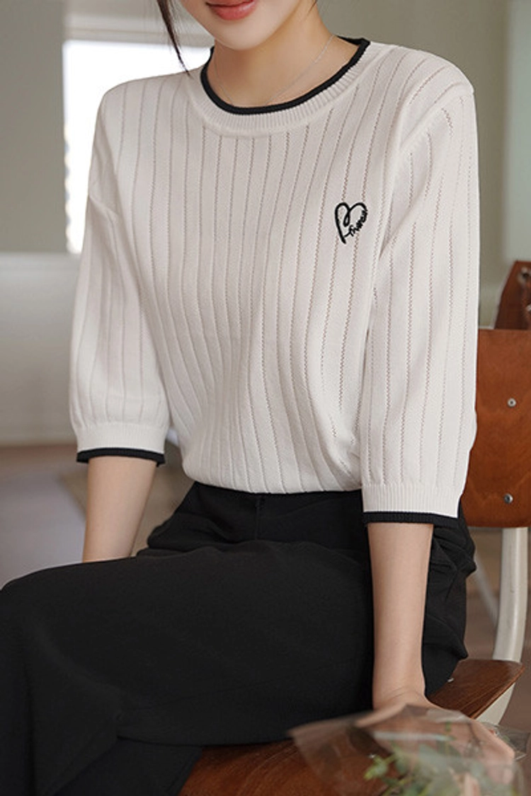 2604C018 撞色拚接刺繡直紋簍穿薄針織上衣