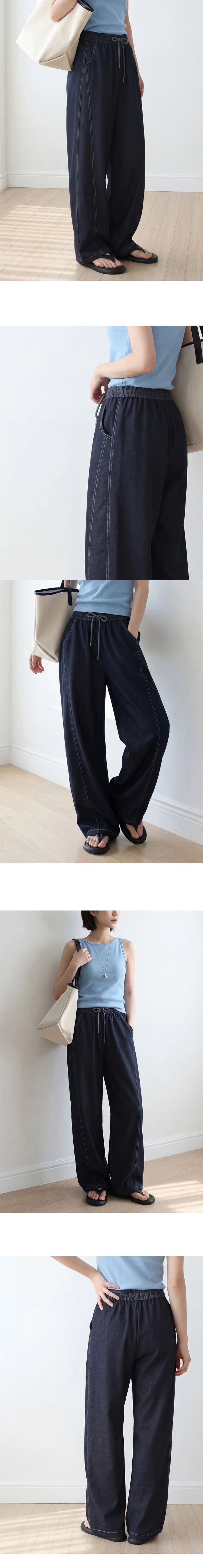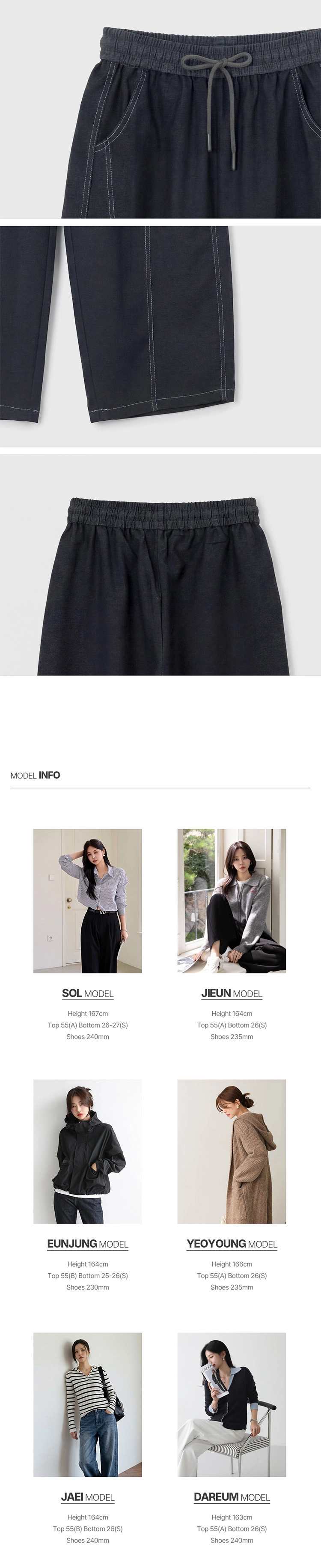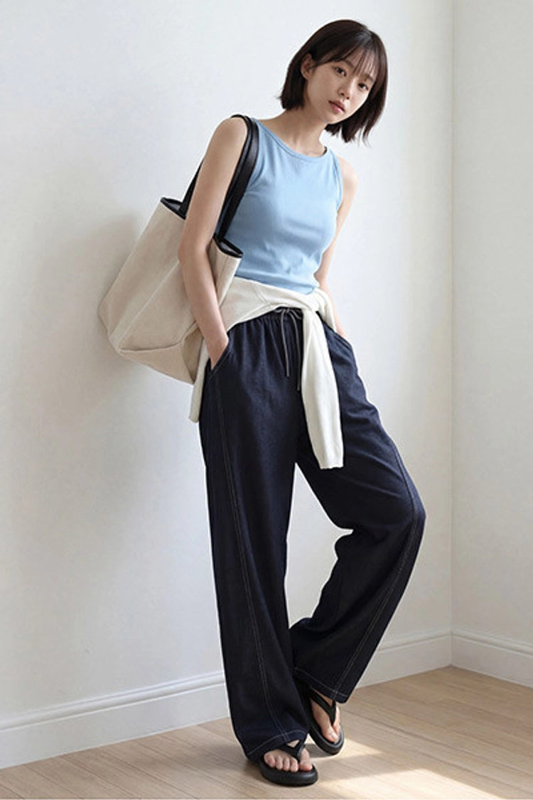 2604P06 抽繩彈性腰圍斜紋縫線顯瘦直筒褲