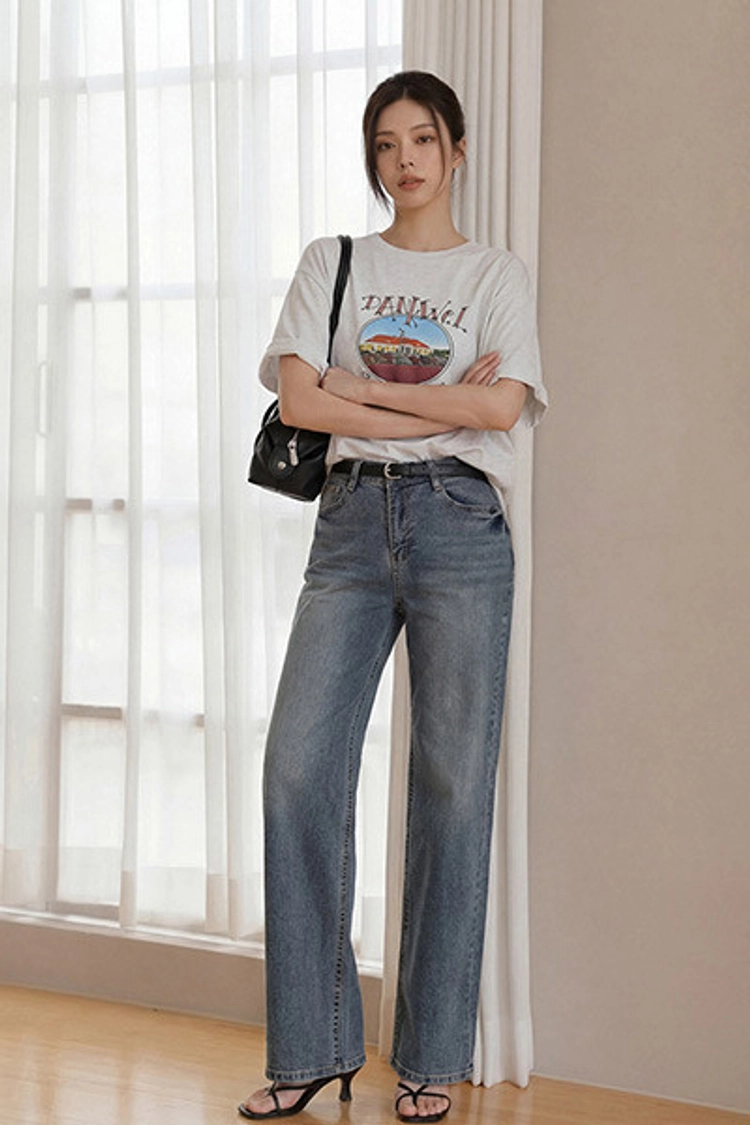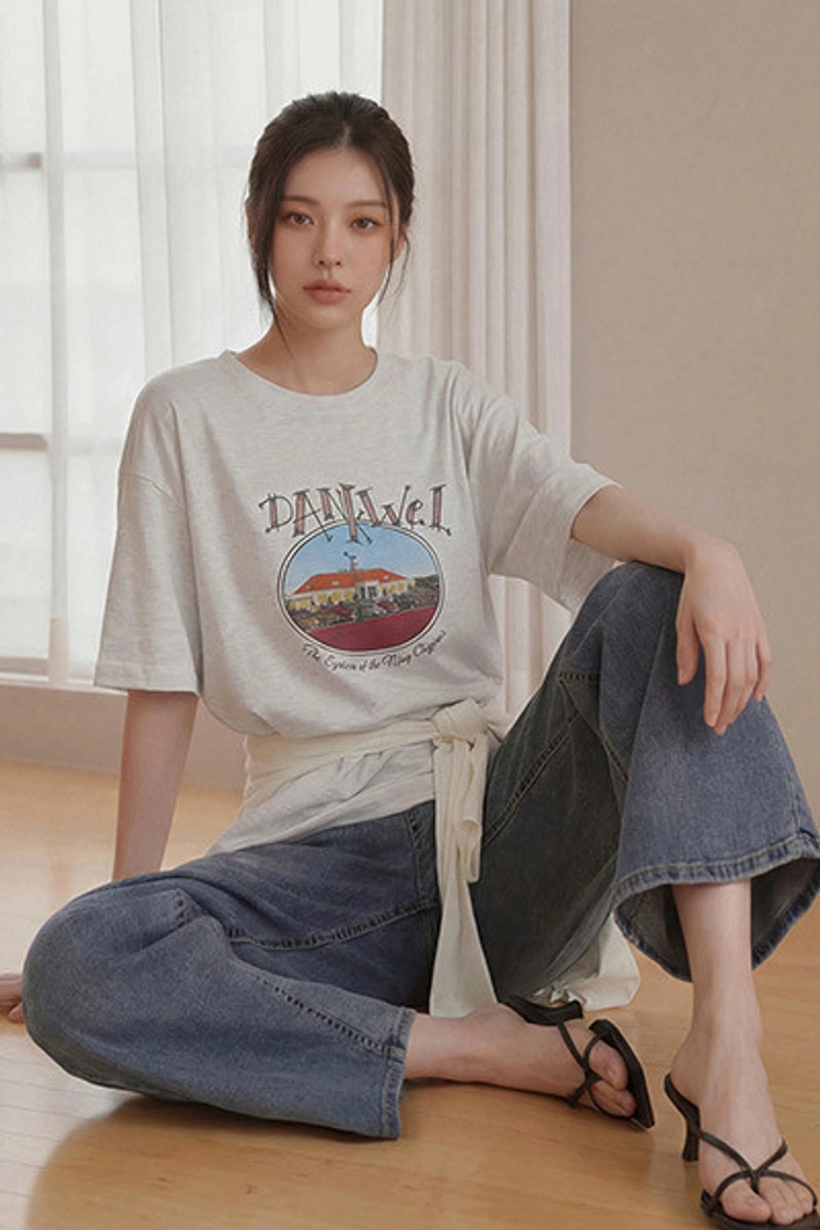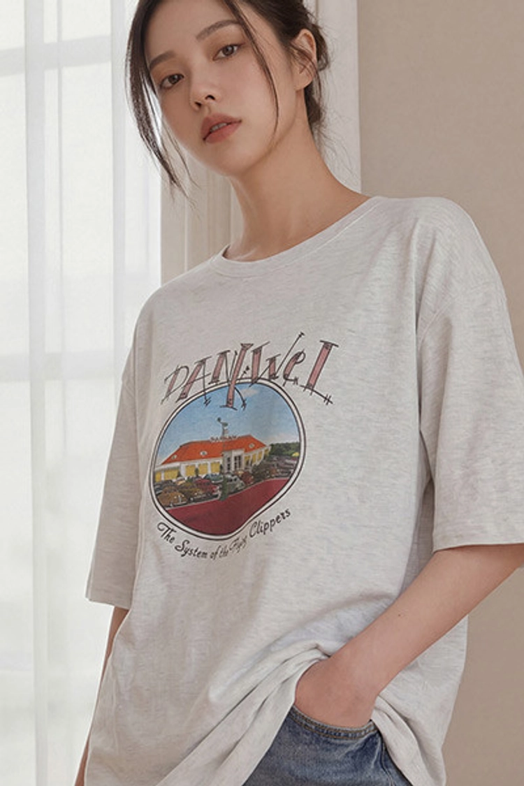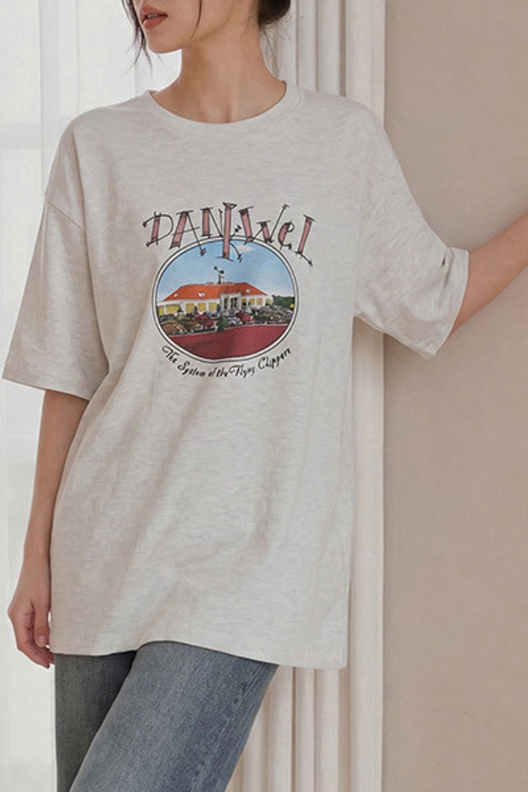 2604P08 洗舊照片印刷寬鬆舒適上衣