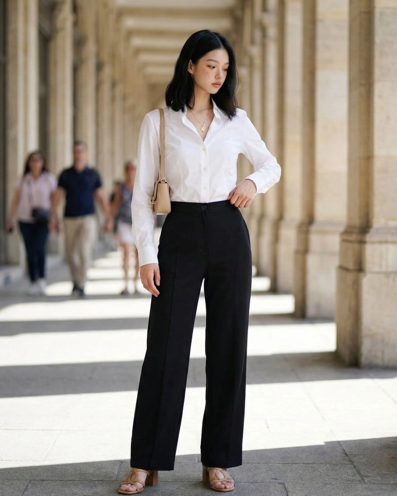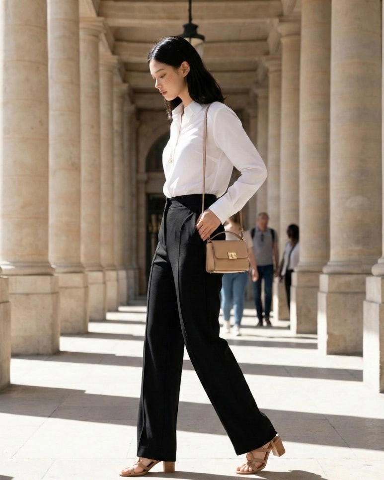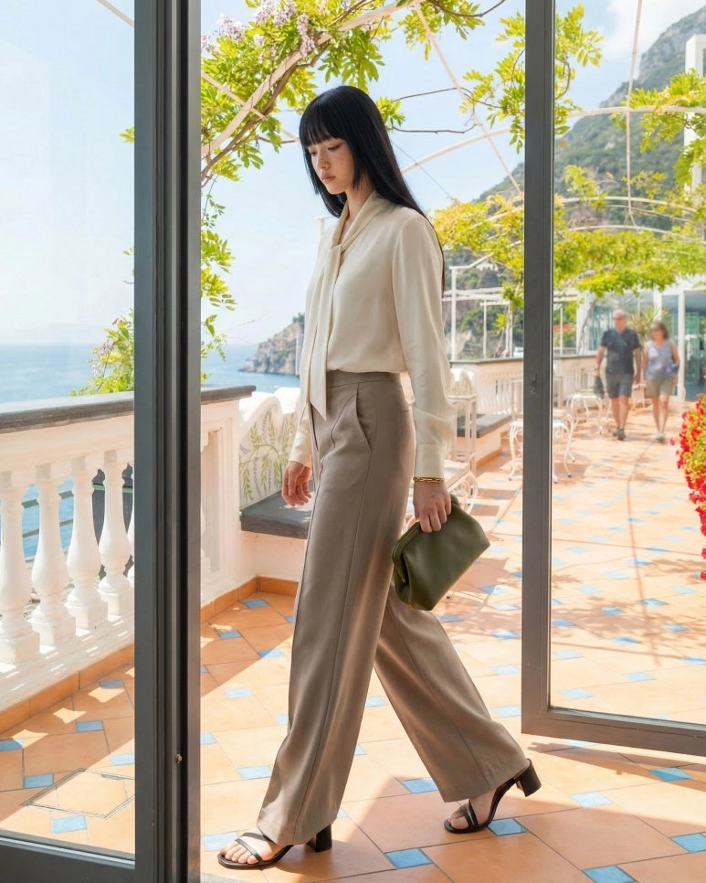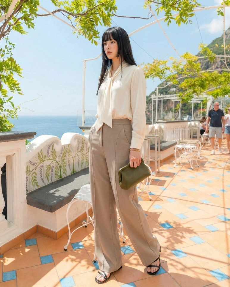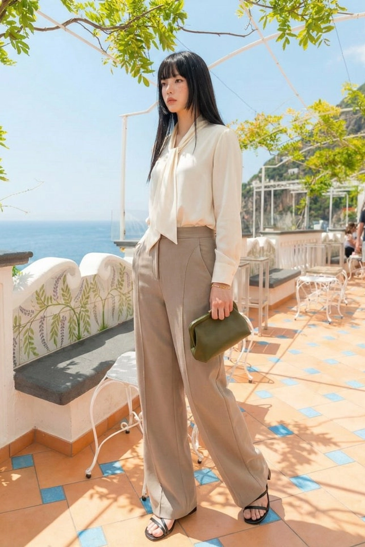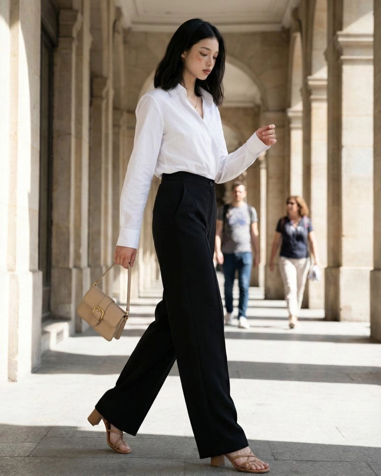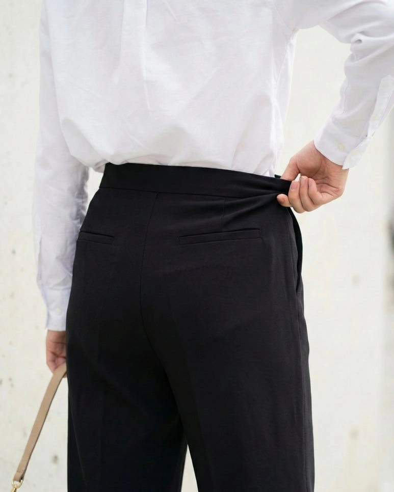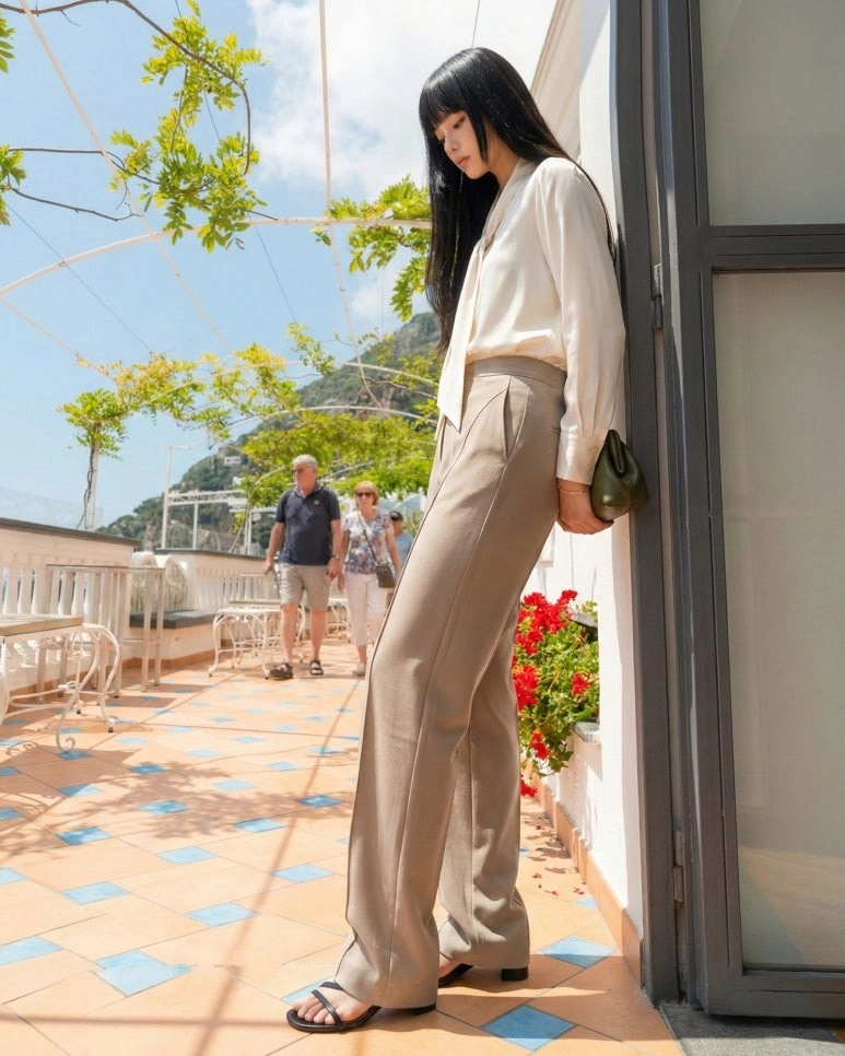 特殊的弧形剪裁,讓下半身看起來格外纖細