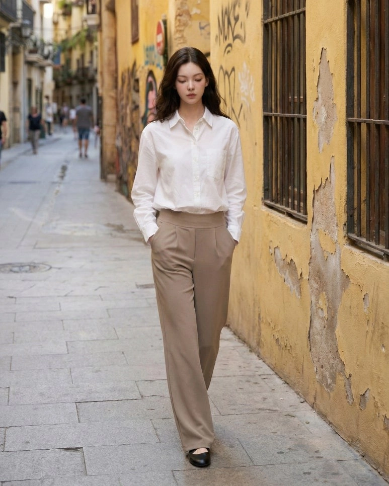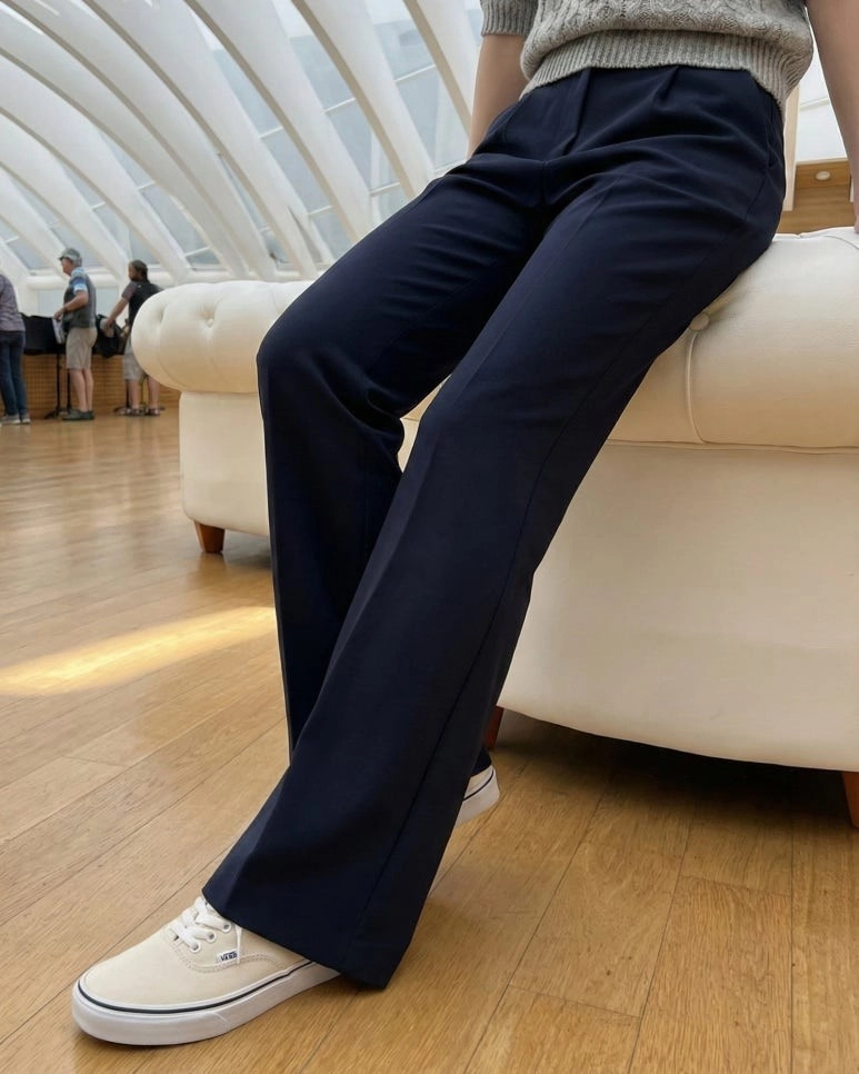 尺寸(cm):S:腰圍66 臀圍94 大腿圍56 下擺圍48 褲襠28 褲長97M:腰圍70 臀圍98 大腿圍58 下擺圍50 褲襠29 褲長98L:腰圍74 臀圍102 大腿圍60 下擺圍52 褲襠30 褲長99XL:腰圍78 臀圍106 大腿圍62 下擺圍54 褲襠31 褲長100材質:聚酯纖維85% 彈性纖維15%產地:韓國洗滌說明:可放洗衣袋機洗MODEL:163cm/46kg/上身S號/下身S號腰圍的部分整圈鬆緊帶材質舒適、彈性佳長時間穿著或是走路都不會覺得悶熱