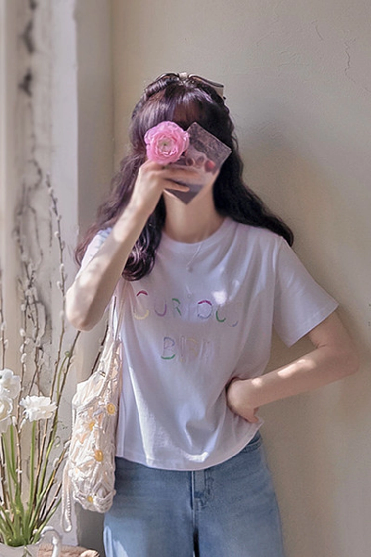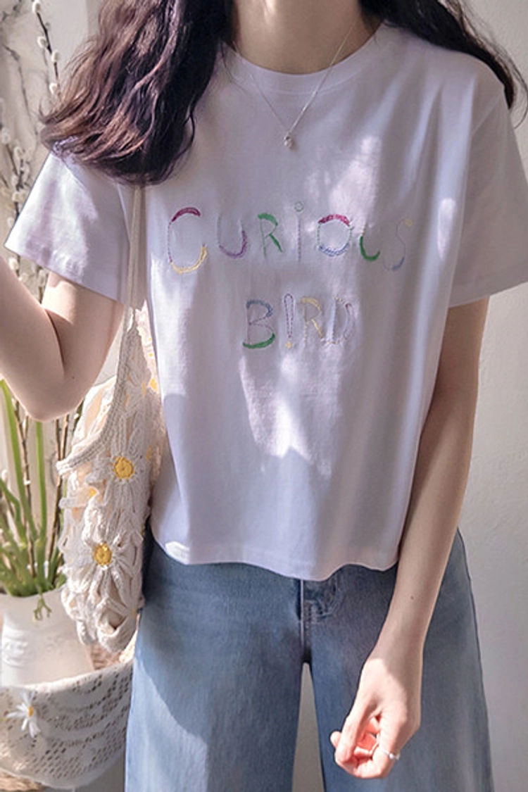 CH26512 繽紛英文刺繡舒適棉上衣